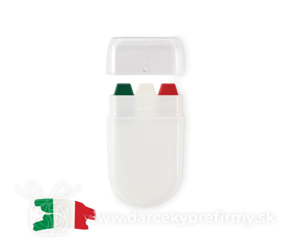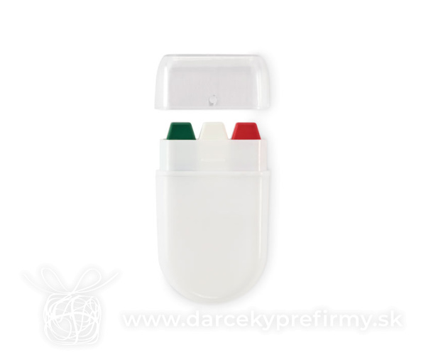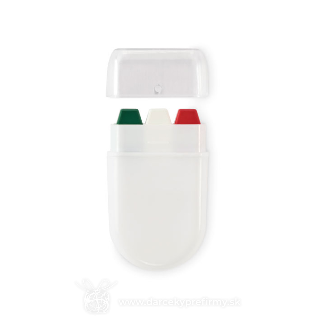 CHEER - Tyčinka na malovanie na telo Ďaľšie varianty 0,88 € 0,88 € 0,88 € 0,88 € 0,88 € 0,88 € 0,88 € 0,88 € Tyčinka pre malovanie na telo v barvách štátnej vlajky. Voskové farby v PP pouzdre s PS víčkom. 0,88 € (bez DPH) Rýchla objednávka Chcem poradiť Dostupnosť: Nie je skladom Rozmery: 3.6 x 6 x 1.5cm Váha: 11g Potlač: tento predmet vieme potlačiť Vaším logom. Ohľadne ceny a technológie potlače, vrátane grafického návrhu s Vaším logom/textom nám prosím pošlite dopyt na info@darcekyprefirmy.sk Polia označené * sú povinné a musia byť vyplnené. Meno a Priezvisko (povinné pole) Firma (povinné pole) Email (povinné pole) Telefón Predpokladané odberné množstvo Správa (povinné pole) Odoslaním formulára súhlasíte so spracovaním osobných údajov Odoslať Odoslať Polia označené * sú povinné a musia byť vyplnené. Meno a Priezvisko (povinné pole) Firma (povinné pole) Email (povinné pole) Telefón Správa (povinné pole) Odoslaním formulára súhlasíte so spracovaním osobných údajov Odoslať Odoslať Mohlo by vás zaujímať Predchádzajúci slajd Následujúci slajd CHEER - Tyčinka na malovanie na telo 0,88 € (cena bez DPH) BRATARA - Náramek s krokoměrem 3,13 € (cena bez DPH) GOAL - Antistresový míč 0,99 € (cena bez DPH)