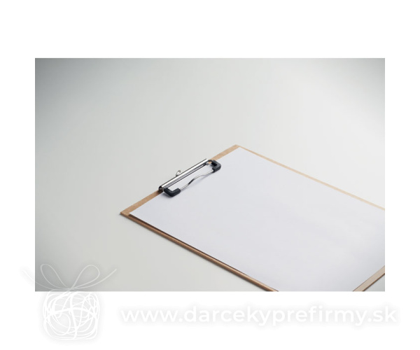 CLIPA - Psací podložka A4 s klipom Ďaľšie varianty 1,89 € 1,89 € Jednodeska z kartónu. Psací podložka sa striebrným železným klipom. Lehká (125g), ideálna pre každodenné použitie v kancelárii, alebo vo škole. 1,89 € (bez DPH) Rýchla objednávka Chcem poradiť Dostupnosť: Skladom do 48hod. 19202 ks Rozmery: 31.5 x 22 x 0.22cm Váha: 130g Potlač: tento predmet vieme potlačiť Vaším logom. Ohľadne ceny a technológie potlače, vrátane grafického návrhu s Vaším logom/textom nám prosím pošlite dopyt na info@darcekyprefirmy.sk Polia označené * sú povinné a musia byť vyplnené. Meno a Priezvisko (povinné pole) Firma (povinné pole) Email (povinné pole) Telefón Predpokladané odberné množstvo Správa (povinné pole) Odoslaním formulára súhlasíte so spracovaním osobných údajov Odoslať Odoslať Polia označené * sú povinné a musia byť vyplnené. Meno a Priezvisko (povinné pole) Firma (povinné pole) Email (povinné pole) Telefón Správa (povinné pole) Odoslaním formulára súhlasíte so spracovaním osobných údajov Odoslať Odoslať Mohlo by vás zaujímať Predchádzajúci slajd Následujúci slajd Bidarray - sada pier 15,55 € (cena bez DPH) Twinox - sada guľôčkového pera a mechanickej ceruzky 2,39 € (cena bez DPH) Pavoc - klipová podložka 3,38 € (cena bez DPH)