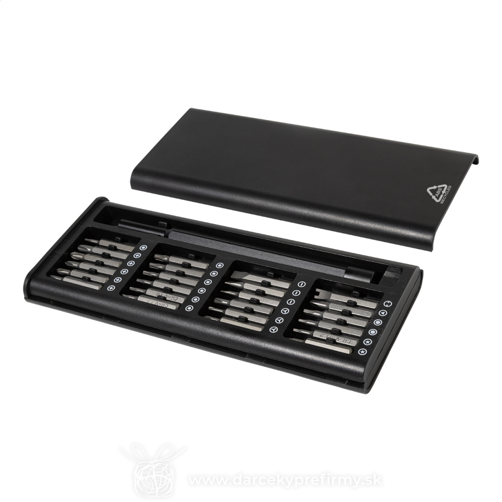 Manybit - RABS sada skrutkovačov Ďaľšie varianty 6,50 € 6,50 € Súprava presných skrutkovačov s 24 bitmi v puzdre z recyklovaného ABS plastu. Rukoväť skrutkovača je vybavená magnetickým uchytením bitov pre rýchlu a bezpečnú výmenu bitov. 6,50 € (bez DPH) Rýchla objednávka Chcem poradiť Dostupnosť: Rozmery: 158×67×16 mm Materiál: Recyklovaný ABS plast Váha: 156g Potlač: tento predmet vieme potlačiť Vaším logom. Ohľadne ceny a technológie potlače, vrátane grafického návrhu s Vaším logom/textom nám prosím pošlite dopyt na info@darcekyprefirmy.sk Polia označené * sú povinné a musia byť vyplnené. Meno a Priezvisko (povinné pole) Firma (povinné pole) Email (povinné pole) Telefón Predpokladané odberné množstvo Správa (povinné pole) Odoslaním formulára súhlasíte so spracovaním osobných údajov Odoslať Odoslať Polia označené * sú povinné a musia byť vyplnené. Meno a Priezvisko (povinné pole) Firma (povinné pole) Email (povinné pole) Telefón Správa (povinné pole) Odoslaním formulára súhlasíte so spracovaním osobných údajov Odoslať Odoslať Mohlo by vás zaujímať Predchádzajúci slajd Následujúci slajd Aerofix - RSS prívesok na kľúče s multifunkčným nástrojom 1,43 € (cena bez DPH) Hoken - RABS prívesok na kľúče s mincou do vozíka 0,50 € (cena bez DPH) Manybit - RABS sada skrutkovačov 6,50 € (cena bez DPH)