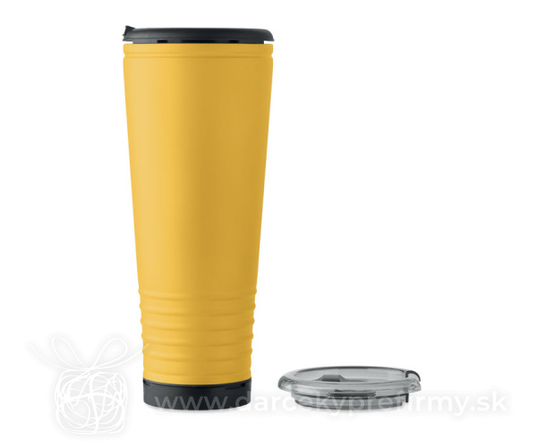 Double wall cheering tumbler in stainless steel outside and PP inside. PS lid with built-in noise-making horn feature. Capacity 700 ml.