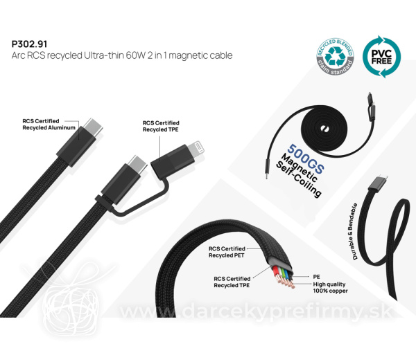 Arc RCS recyklovaný ultratenký 60W 2 v 1 magnetický kábel