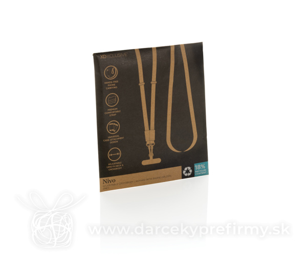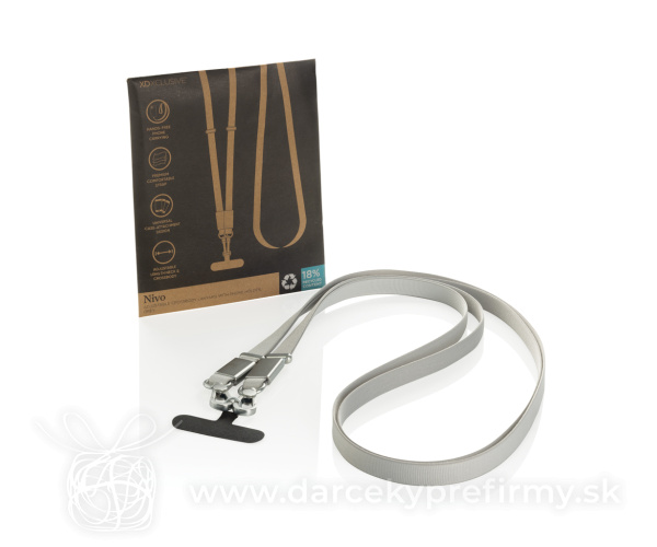 Nivo RCS recyklovaný PET crossbody šnúrka Ďaľšie varianty 11,14 € 11,14 € 11,14 € 11,14 € Nivo je univerzálna crossbody šnúrka na telefón navrhnutá tak, aby udržala vaše zariadenie v bezpečí a vždy na dosah ruky. Vyrobená z recyklovaného PET s prémiovými hliníkovými detailmi, Nivo spája odolnosť s moderným vzhľadom. Hrubý, vysokokvalitný popruh je navrhnutý pre pohodlné nosenie a je ideálny na každodenné používanie. Univerzálny a pevný dizajn funguje s akýmkoľvek telefónom s ochranným krytom, takže môžete zariadenie nosiť bezpečne bez obmedzenia funkčnosti. Nivo je možné nosiť okolo krku alebo ako crossbody popruh, čím poskytuje pohodlie bez použitia rúk. Nastaviteľný popruh je možné jednoducho nastaviť od 200 cm do 120 cm, čím zabezpečuje vhodné prispôsobenie pre každého používateľa. Vyrobené z recyklovaného PET a recyklovaného hliníka s certifikáciou RCS (Recycled Claim Standard). Celkový podiel recyklovaného materiálu je 18 % z celkovej hmotnosti produktu. Bez PVC a balené v bezplastovom FSC balení. 11,14 € (bez DPH) Rýchla objednávka Chcem poradiť Dostupnosť: Rozmery: 60 x 1,7 x 0,6 cm Materiál: rPET, Zliatina zinku Váha: 70g Potlač: tento predmet vieme potlačiť Vaším logom. Ohľadne ceny a technológie potlače, vrátane grafického návrhu s Vaším logom/textom nám prosím pošlite dopyt na info@darcekyprefirmy.sk Polia označené * sú povinné a musia byť vyplnené. Meno a Priezvisko (povinné pole) Firma (povinné pole) Email (povinné pole) Telefón Predpokladané odberné množstvo Správa (povinné pole) Odoslaním formulára súhlasíte so spracovaním osobných údajov Odoslať Odoslať Polia označené * sú povinné a musia byť vyplnené. Meno a Priezvisko (povinné pole) Firma (povinné pole) Email (povinné pole) Telefón Správa (povinné pole) Odoslaním formulára súhlasíte so spracovaním osobných údajov Odoslať Odoslať Mohlo by vás zaujímať Predchádzajúci slajd Následujúci slajd Nivo RCS recyklovaný PET crossbody šnúrka 11,14 € (cena bez DPH) Nivo RCS recyklovaný PET crossbody šnúrka 11,14 € (cena bez DPH) Nivo RCS recyklovaný PET crossbody šnúrka 11,14 € (cena bez DPH)