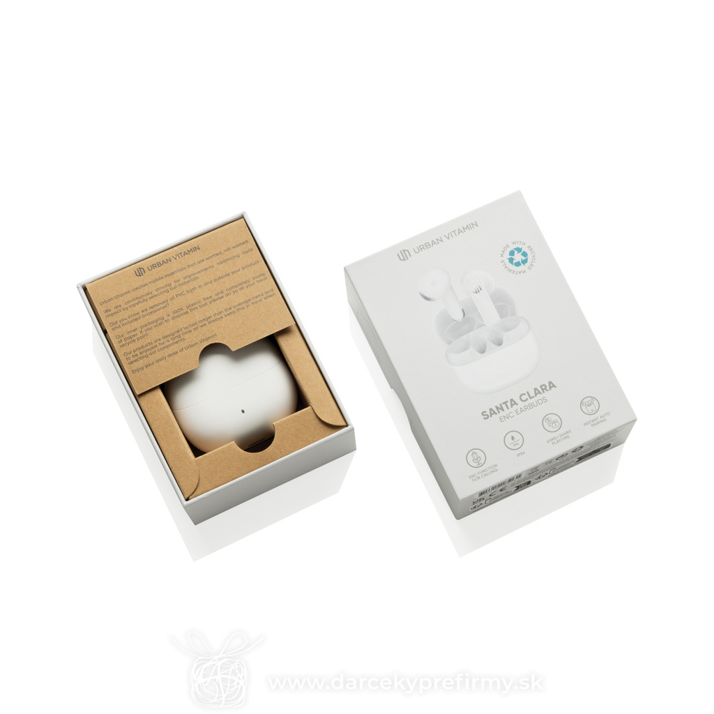 Urban Vitamin Santa Clara RCS plastové ENC slúchadlá Ďaľšie varianty 24,86 € 24,86 € 24,86 € Ponorte sa do krištáľovo čistého zvuku kdekoľvek vás život zavedie. Slúchadlá Santa Clara ENC s duálnym mikrofónom a potlačením hluku poskytujú mimoriadne čisté hovory filtrovaním nežiaducich zvukov v pozadí, čím zabezpečujú, že váš hlas aj hudba zostanú ostré a prirodzené. Vďaka odolnosti IPX4 proti striekajúcej vode sú pripravené na tréningy, outdoorové aktivity aj mierny dážď. Poháňané najnovším čipom BT 6.0 poskytujú rýchle a stabilné pripojenie s vynikajúcou energ. efektivitou. Užite si až 6 hodín prehrávania, pričom kompaktné nabíjacie puzdro predlžuje celkový čas počúvania až na 24 hodín. Slúchadlá disponujú okamžitým automat. párovaním – stačí otvoriť puzdro a automaticky sa pripoja, takže môžete začať počúvať ihneď. Navrhnuté pre celodenné pohodlie. Majú hladké línie, intuitívne dotykové ovládanie a čistý minimalistický vzhľad vytvorený pre život v pohybe. Vyrobené z RCS cert. rec. ABS plastu. Produkty Urban Vitamin sú bez PVC a balené v obaloch s red. množstvom plastov. 24,86 € (bez DPH) Rýchla objednávka Chcem poradiť Dostupnosť: Rozmery: 5,4 x 5,2 x 2,4 cm Materiál: Recyklované ABS Váha: 45g Potlač: tento predmet vieme potlačiť Vaším logom. Ohľadne ceny a technológie potlače, vrátane grafického návrhu s Vaším logom/textom nám prosím pošlite dopyt na info@darcekyprefirmy.sk Polia označené * sú povinné a musia byť vyplnené. Meno a Priezvisko (povinné pole) Firma (povinné pole) Email (povinné pole) Telefón Predpokladané odberné množstvo Správa (povinné pole) Odoslaním formulára súhlasíte so spracovaním osobných údajov Odoslať Odoslať Polia označené * sú povinné a musia byť vyplnené. Meno a Priezvisko (povinné pole) Firma (povinné pole) Email (povinné pole) Telefón Správa (povinné pole) Odoslaním formulára súhlasíte so spracovaním osobných údajov Odoslať Odoslať Mohlo by vás zaujímať Predchádzajúci slajd Následujúci slajd Urban Vitamin Santa Clara RCS plastové ENC slúchadlá 24,86 € (cena bez DPH) Urban Vitamin Santa Clara RCS plastové ENC slúchadlá 24,86 € (cena bez DPH) Urban Vitamin Ventura RCS Hybrid ANC & ENC slúchadlá 53,36 € (cena bez DPH)