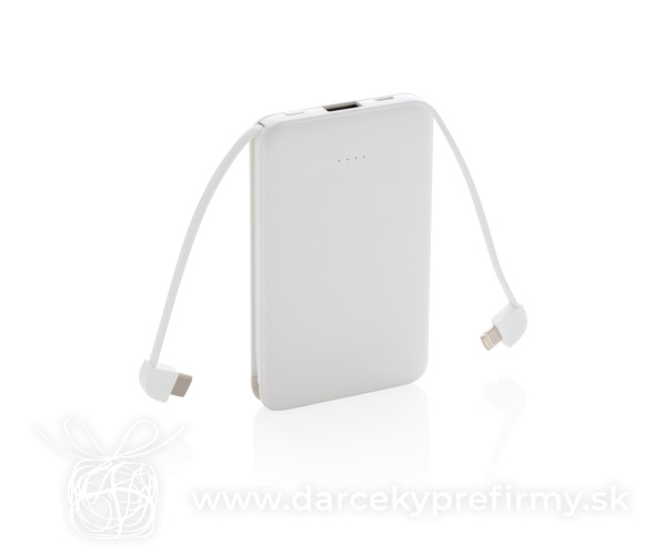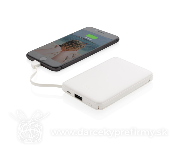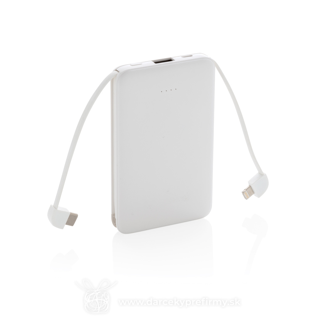 Vrecková powerbanka 5 000 mAh s integrovaným káblom Ďaľšie varianty 22,35 € 22,35 € Kompaktná tenká powerbanka vyrobená z odolného ABS s integrovaným TPE káblom 3 v 1, pomocou ktorého nabijete akýkoľvek telefón na trhu. Obsahuje vysoko kvalitnú lítium polymérovú batériu radu A s kapacitou 5 000 mAh. Poskytuje tak dostatok energie pre plné nabitie vášho telefónu až 2x. Vrátane indikátorov stavu nabitia. Vstup 5V/2A; Výstup 5V/2A. 22,35 € (bez DPH) Rýchla objednávka Chcem poradiť Dostupnosť: Skladom do 48hod. 1546 ks Rozmery: 10,5 x 6,4 x 1,3 cm Materiál: ABS, TPE Váha: 111g Potlač: tento predmet vieme potlačiť Vaším logom. Ohľadne ceny a technológie potlače, vrátane grafického návrhu s Vaším logom/textom nám prosím pošlite dopyt na info@darcekyprefirmy.sk Polia označené * sú povinné a musia byť vyplnené. Meno a Priezvisko (povinné pole) Firma (povinné pole) Email (povinné pole) Telefón Predpokladané odberné množstvo Správa (povinné pole) Odoslaním formulára súhlasíte so spracovaním osobných údajov Odoslať Odoslať Polia označené * sú povinné a musia byť vyplnené. Meno a Priezvisko (povinné pole) Firma (povinné pole) Email (povinné pole) Telefón Správa (povinné pole) Odoslaním formulára súhlasíte so spracovaním osobných údajov Odoslať Odoslať Mohlo by vás zaujímať Predchádzajúci slajd Následujúci slajd Univerzálna nabíjačka 5v1 65W 15000mAh Urban Vitamin Oxnard 110,63 € (cena bez DPH) POWERFLAT8 - Power banka 8000 mAh 10,96 € (cena bez DPH) Powerbanka Urban Vitamin Pasadena 20 000 mAh 18W PD 55,85 € (cena bez DPH)