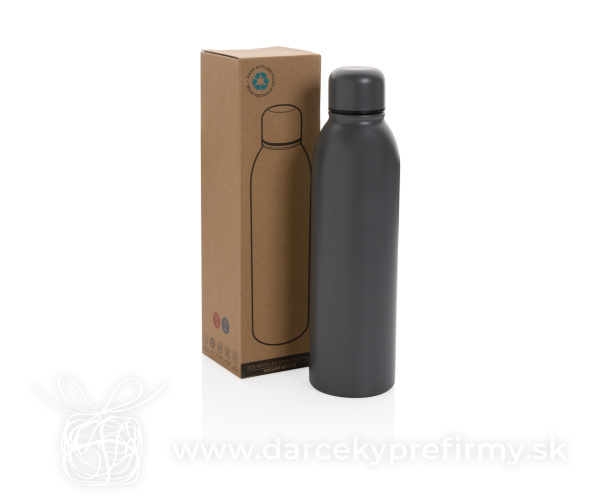 Termo fľaša z RCS recyklovanej ocele 500ml Ďaľšie varianty 12,35 € 12,35 € 12,35 € 12,35 € 9,88 € 12,35 € Nepriepustná termo fľaša s bezpečným skrutkovacím uzáverom s úzkym hrdlom na pohodlné pitie. Úzke telo pasuje do väčšiny automobilových držiakov na nápoje. Dvojstenná vákuová izolácia uchová nápoj horúci po dobu až 5h a studený až 15h. Vyrobené z RCS recyklovanej nehrdzavejúcej ocele. RCS (Recycled Claim Standard) je globálny štandard, ktorý umožňuje overiť použitie recyklovaného materiálu v produkte naprieč celým dodávateľským reťazcom. Podiel použitého recyklovaného materiálu vzhľadom na celkovú váhu produktu: 90 %. Bez BPA. Objem: 500 ml. Balené v FSC kraftovej krabičke. 12,35 € (bez DPH) Rýchla objednávka Chcem poradiť Dostupnosť: Skladom do 48hod. 2066 ks Rozmery: 24,8 x ø 6,7 cm Materiál: Recyklovaná nehrdzavejúca oceľ, Recyklovaná nehrdzavejúca oceľ Váha: 288g Potlač: tento predmet vieme potlačiť Vaším logom. Ohľadne ceny a technológie potlače, vrátane grafického návrhu s Vaším logom/textom nám prosím pošlite dopyt na info@darcekyprefirmy.sk Polia označené * sú povinné a musia byť vyplnené. Meno a Priezvisko (povinné pole) Firma (povinné pole) Email (povinné pole) Telefón Predpokladané odberné množstvo Správa (povinné pole) Odoslaním formulára súhlasíte so spracovaním osobných údajov Odoslať Odoslať Polia označené * sú povinné a musia byť vyplnené. Meno a Priezvisko (povinné pole) Firma (povinné pole) Email (povinné pole) Telefón Správa (povinné pole) Odoslaním formulára súhlasíte so spracovaním osobných údajov Odoslať Odoslať Mohlo by vás zaujímať Predchádzajúci slajd Následujúci slajd Obata - termohrnček RSS 4,81 € (cena bez DPH) Termo fľaša Avira Avior 500ml z RCS recyklovanej ocele 17,51 € (cena bez DPH) Celofarebná nerezová termo fľaša 500ml 9,23 € (cena bez DPH)