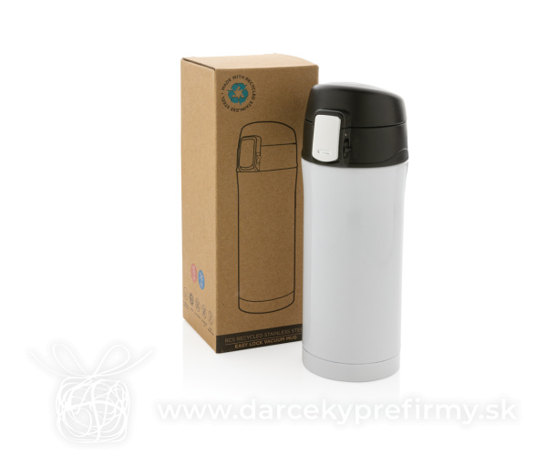 Termohrnček Easy lock z RCS recyklovanej ocele Ďaľšie varianty 16,15 € 16,15 € 16,15 € 16,15 € 16,15 € Termohrnček Easy lock s jedinečným dizajnom. Uzáver je možné jednoducho ovládať jednou rukou a uzamknúť pre zabránenie vyliatiu tekutiny. Uzáver je zároveň navrhnutý pre ľahké ručné umývanie aj umývanie v umývačke riadu. Nápoje uchová až 5h teplé a 15h studené. Priemer zodpovedá väčšine držiakom v automobiloch. Vyrobená z RCS recyklovanej ocele. RCS (Recycled Claim Standard) je globálny štandard, ktorý umožňuje overiť použitie recyklovaného materiálu v produkte naprieč celým dodávateľským reťazcom. Celkový podiel recyklátu podľa váhy produktu: 71%. Objem: 300 ml. Balené v FSC® kraftovej darčekovej krabičke. 16,15 € (bez DPH) Rýchla objednávka Chcem poradiť Dostupnosť: Skladom do 48hod. 13643 ks Rozmery: 19 x ø 6,5 cm Materiál: Recyklovaná nehrdzavejúca oceľ Váha: 250g Potlač: tento predmet vieme potlačiť Vaším logom. Ohľadne ceny a technológie potlače, vrátane grafického návrhu s Vaším logom/textom nám prosím pošlite dopyt na info@darcekyprefirmy.sk Polia označené * sú povinné a musia byť vyplnené. Meno a Priezvisko (povinné pole) Firma (povinné pole) Email (povinné pole) Telefón Predpokladané odberné množstvo Správa (povinné pole) Odoslaním formulára súhlasíte so spracovaním osobných údajov Odoslať Odoslať Polia označené * sú povinné a musia byť vyplnené. Meno a Priezvisko (povinné pole) Firma (povinné pole) Email (povinné pole) Telefón Správa (povinné pole) Odoslaním formulára súhlasíte so spracovaním osobných údajov Odoslať Odoslať Mohlo by vás zaujímať Predchádzajúci slajd Následujúci slajd Termohrnček s antimikrobiálnou ochranou 8,63 € (cena bez DPH) Noricano - termohrnček RSS 9,36 € (cena bez DPH) Streaky Grab - termo hrnček 8,32 € (cena bez DPH)