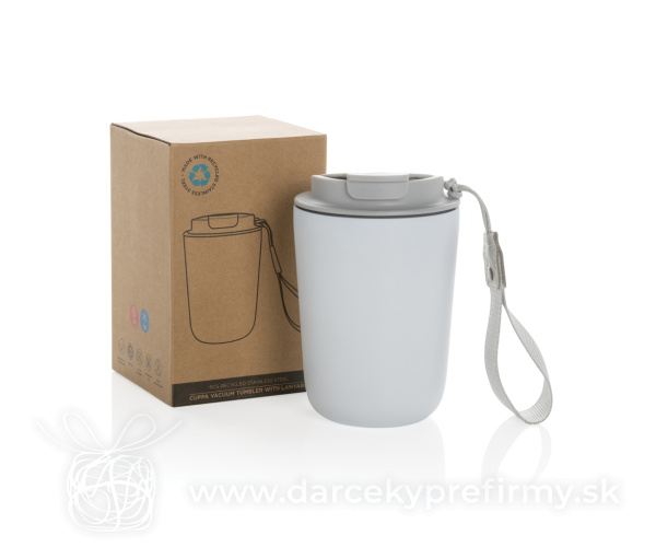 Termohrnček Cuppa z RCS recykl. nerezovej ocele s lanyardom Ďaľšie varianty 16,15 € 16,15 € Termohrnček Cuppa s nepriepustným flip lid uzáverom a praktickým lanyardom pre pohodlné prenášanie. Vyrobený z RCS recyklovaných materiálov. RCS (Recycled Claim Standard) je globálny štandard, ktorý umožňuje overiť použitie recyklovaného materiálu v produkte naprieč celým dodávateľským reťazcom. Celkový podiel recyklátu podľa váhy produktu: 74%. Objem: 380 ml. 16,15 € (bez DPH) Rýchla objednávka Chcem poradiť Dostupnosť: Skladom do 48hod. 1086 ks Rozmery: 13,7 x ø 8,8 cm Materiál: Recyklovaná nehrdzavejúca oceľ Váha: 225g Potlač: tento predmet vieme potlačiť Vaším logom. Ohľadne ceny a technológie potlače, vrátane grafického návrhu s Vaším logom/textom nám prosím pošlite dopyt na info@darcekyprefirmy.sk Polia označené * sú povinné a musia byť vyplnené. Meno a Priezvisko (povinné pole) Firma (povinné pole) Email (povinné pole) Telefón Predpokladané odberné množstvo Správa (povinné pole) Odoslaním formulára súhlasíte so spracovaním osobných údajov Odoslať Odoslať Polia označené * sú povinné a musia byť vyplnené. Meno a Priezvisko (povinné pole) Firma (povinné pole) Email (povinné pole) Telefón Správa (povinné pole) Odoslaním formulára súhlasíte so spracovaním osobných údajov Odoslať Odoslať Mohlo by vás zaujímať Predchádzajúci slajd Následujúci slajd Wapper - termo hrnček 4,68 € (cena bez DPH) Grabicano - termo hrnček 11,05 € (cena bez DPH) Termohrnček Avira Alya 300ml z RCS recyklovanej ocele 22,25 € (cena bez DPH)