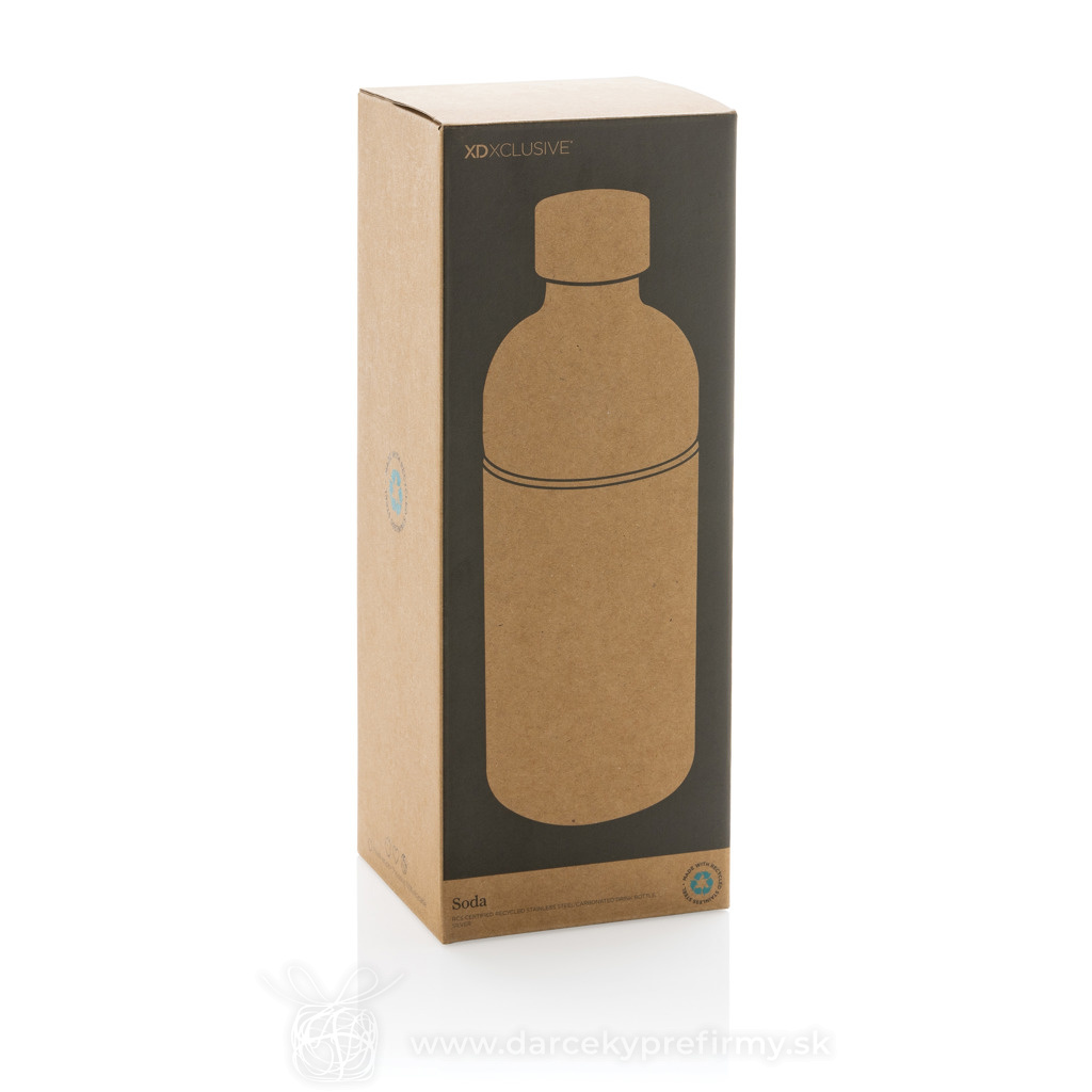 Fľaša Soda na sýtené nápoje z RCS recyklovaného hliníka Ďaľšie varianty 16,15 € 16,15 € 16,15 € Fľaša Soda s unikátnou konštrukciou, ktorá je vhodná pre sýtené nápoje a je zaručene nepriepustná. Vyrobená z RCS recyklovaných materiálov. RCS (Recycled Claim Standard) je globálny štandard, ktorý umožňuje overiť použitie recyklovaného materiálu v produkte naprieč celým dodávateľským reťazcom. Celkový podiel recyklátu podľa váhy produktu: 85%. Objem: 800 ml. Bez BPA. Balené v FSC® kraftovej darčekovej krabičke. Registrovaný dizajn®. 16,15 € (bez DPH) Rýchla objednávka Chcem poradiť Dostupnosť: Skladom do 48hod. 78 ks Rozmery: 21,4 x ø 8,2 cm Materiál: Recyklovaná nehrdzavejúca oceľ Váha: 260g Potlač: tento predmet vieme potlačiť Vaším logom. Ohľadne ceny a technológie potlače, vrátane grafického návrhu s Vaším logom/textom nám prosím pošlite dopyt na info@darcekyprefirmy.sk Polia označené * sú povinné a musia byť vyplnené. Meno a Priezvisko (povinné pole) Firma (povinné pole) Email (povinné pole) Telefón Predpokladané odberné množstvo Správa (povinné pole) Odoslaním formulára súhlasíte so spracovaním osobných údajov Odoslať Odoslať Polia označené * sú povinné a musia byť vyplnené. Meno a Priezvisko (povinné pole) Firma (povinné pole) Email (povinné pole) Telefón Správa (povinné pole) Odoslaním formulára súhlasíte so spracovaním osobných údajov Odoslať Odoslať Mohlo by vás zaujímať Predchádzajúci slajd Následujúci slajd BITER - Skládací láhev na vodu 500 ml 5,48 € (cena bez DPH) Fľaša na vodu Fluid 600ml z RCS recyklovanej ocele 18,61 € (cena bez DPH) ISJFORDEN - Láhev na pití z RPET 700 ml 5,06 € (cena bez DPH)