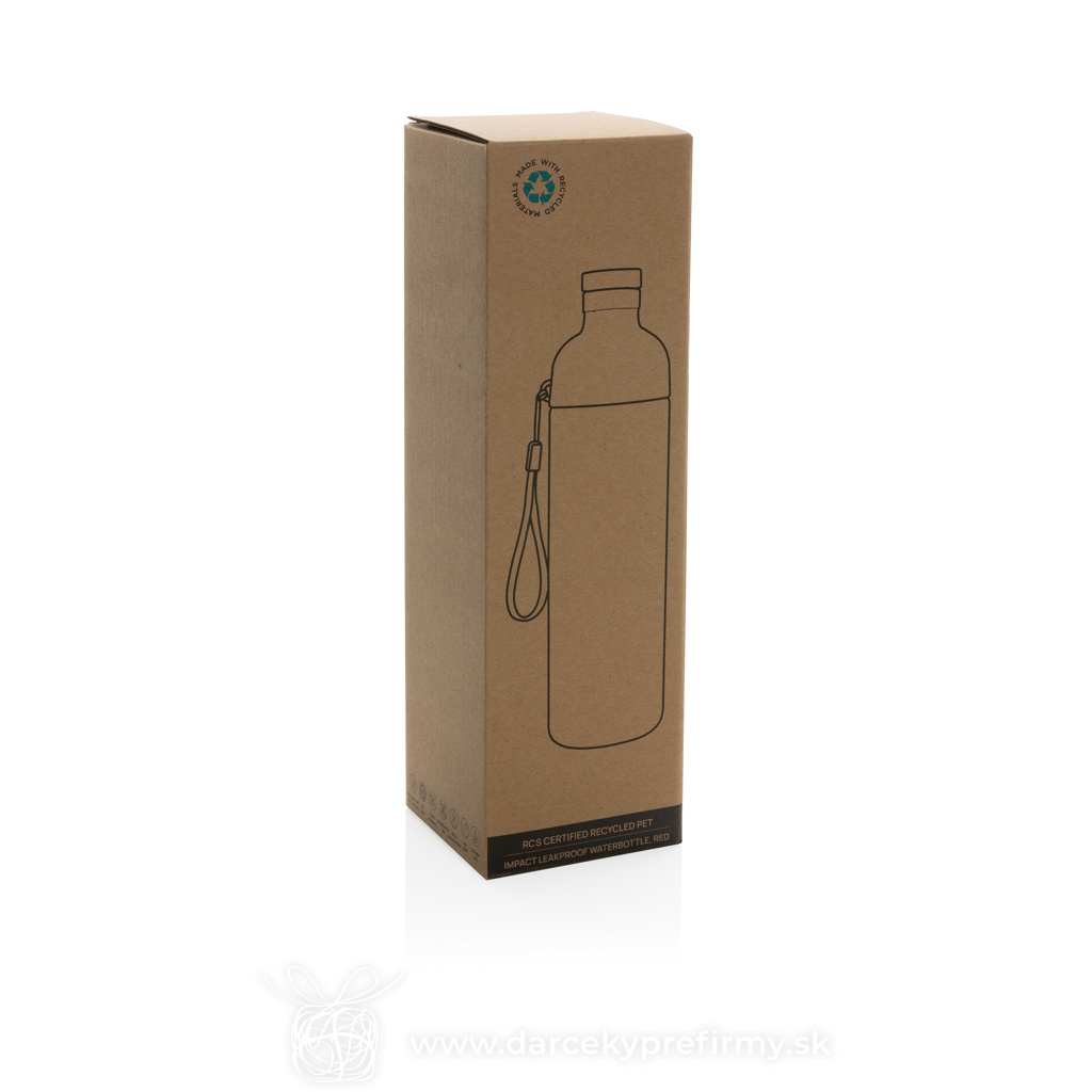 Nepriepustná fľaša na vodu Impact 600ml z RCS RPET Ďaľšie varianty 8,65 € 8,65 € 8,65 € 8,65 € 8,65 € 8,65 € Nepriepustná fľaša na vodu v čistom sviežom dizajne s priehľadným telom. Široký uzáver umožňuje ľahké čistenie a pridávanie ľadu alebo ovocia. Pútko na pohodlné nosenie. Len na studené nápoje a ručné umývanie. Vyrobená z RCS recyklovaného PET plastu. RCS (Recycled Claim Standard) je globálny štandard, ktorý umožňuje overiť použitie recyklovaného materiálu v produkte naprieč celým dodávateľským reťazcom. Celkový podiel recyklátu podľa váhy produktu: 65%. Bez BPA. Objem 600 ml. Balené v FSC® kraftovej darčekovej krabičke. Z výťažku každého predaného produktu je prispených 2% na podporu iniciatívy Water.org. 8,65 € (bez DPH) Rýchla objednávka Chcem poradiť Dostupnosť: Skladom do 48hod. 6861 ks Rozmery: 24,3 x ø 6,5 cm Materiál: rPET, PP Váha: 142g Potlač: tento predmet vieme potlačiť Vaším logom. Ohľadne ceny a technológie potlače, vrátane grafického návrhu s Vaším logom/textom nám prosím pošlite dopyt na info@darcekyprefirmy.sk Polia označené * sú povinné a musia byť vyplnené. Meno a Priezvisko (povinné pole) Firma (povinné pole) Email (povinné pole) Telefón Predpokladané odberné množstvo Správa (povinné pole) Odoslaním formulára súhlasíte so spracovaním osobných údajov Odoslať Odoslať Polia označené * sú povinné a musia byť vyplnené. Meno a Priezvisko (povinné pole) Firma (povinné pole) Email (povinné pole) Telefón Správa (povinné pole) Odoslaním formulára súhlasíte so spracovaním osobných údajov Odoslať Odoslať Mohlo by vás zaujímať Predchádzajúci slajd Následujúci slajd CHAI - Skleněná láhev 500ml v obalu 5,18 € (cena bez DPH) GATES - Skládací láhev na vodu 0,90 € (cena bez DPH) Fitty - RPET športová fľaša 3,25 € (cena bez DPH)