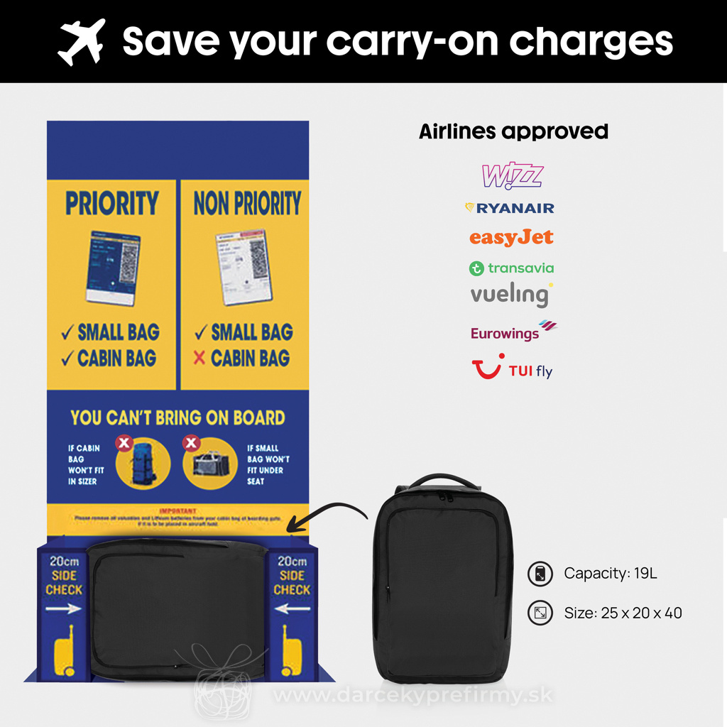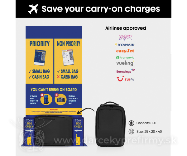 Cestovná taška Ace Free On Board z RPET AWARE™ Ďaľšie varianty 34,76 € 34,76 € 34,76 € Cestovná taška je určená pre cestujúcich, ktorí si uvedomujú svoj rozpočet a oceňujú pohodlie. Táto kompaktná taška je vyrobená zo 100% rPET a je vybavená nastaviteľnými ramennými popruhmi a predným vreckom na zips pre rýchly prístup k nevyhnutným veciam. Tento batoh je ideálny na víkendové výlety a spĺňa požiadavky na maximálnu veľkosť bezplatnej príručnej batožiny u nízkonákladových leteckých spoločností, čo zaručuje, že za vašu batožinu nebudete platiť žiadne ďalšie poplatky. Vyrobené z recyklovaného polyesteru so značením AWARE™. Z každého predaného výrobku so značkou AWARE™ budú 2 % výťažku venované organizácii Water.org. Neobsahuje PVC. 34,76 € (bez DPH) Rýchla objednávka Chcem poradiť Dostupnosť: Skladom do 48hod. 1615 ks Rozmery: 25 x 20 x 40 cm Materiál: rPET, rPET Váha: 400g Potlač: tento predmet vieme potlačiť Vaším logom. Ohľadne ceny a technológie potlače, vrátane grafického návrhu s Vaším logom/textom nám prosím pošlite dopyt na info@darcekyprefirmy.sk Polia označené * sú povinné a musia byť vyplnené. Meno a Priezvisko (povinné pole) Firma (povinné pole) Email (povinné pole) Telefón Predpokladané odberné množstvo Správa (povinné pole) Odoslaním formulára súhlasíte so spracovaním osobných údajov Odoslať Odoslať Polia označené * sú povinné a musia byť vyplnené. Meno a Priezvisko (povinné pole) Firma (povinné pole) Email (povinné pole) Telefón Správa (povinné pole) Odoslaním formulára súhlasíte so spracovaním osobných údajov Odoslať Odoslať Mohlo by vás zaujímať Predchádzajúci slajd Následujúci slajd Crescent XL AWARE™ RPET taška cez rameno v tvare polmesiaca 8,63 € (cena bez DPH) Sergio - športová taška 9,88 € (cena bez DPH) DUFF - Cestovní taška 190T RPET 20L 3,19 € (cena bez DPH)