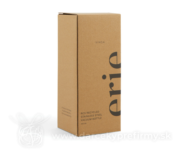 Termo fľaša VINGA Erie 450ml z RCS recykl. nerezovej ocele Ďaľšie varianty 18,55 € 18,55 € 18,55 € 18,55 € 18,55 € 18,55 € Premyslene navrhnutá fľaša na nápoje s jedinečným kužeľovitým tvarom a viečkom, ktoré sa pohodlne drží. Vyrobená s dôrazom na detail, spája funkčnosť a moderný dizajn. Dvojstenná vákuová konštrukcia z recyklovanej nehrdzavejúcej ocele udrží nápoje studené až 15 hodín a teplé až 6 hodín. Dodávaná v FSC® certifikovanom kraftovom balení. Vyrobená z RCS certifikovanej rec. nehrdzavejúcej ocele. Celkový podiel rec. materiálu: 75 % z celkovej hmotnosti produktu. Certifikované spoločnosťou Control Union, CU1162221. 18,55 € (bez DPH) Rýchla objednávka Chcem poradiť Dostupnosť: Skladom do 48hod. 2187 ks Rozmery: 19,3 x ø 7,8 cm Materiál: Recyklovaná nehrdzavejúca oceľ, PP Váha: 249g Potlač: tento predmet vieme potlačiť Vaším logom. Ohľadne ceny a technológie potlače, vrátane grafického návrhu s Vaším logom/textom nám prosím pošlite dopyt na info@darcekyprefirmy.sk Polia označené * sú povinné a musia byť vyplnené. Meno a Priezvisko (povinné pole) Firma (povinné pole) Email (povinné pole) Telefón Predpokladané odberné množstvo Správa (povinné pole) Odoslaním formulára súhlasíte so spracovaním osobných údajov Odoslať Odoslať Polia označené * sú povinné a musia byť vyplnené. Meno a Priezvisko (povinné pole) Firma (povinné pole) Email (povinné pole) Telefón Správa (povinné pole) Odoslaním formulára súhlasíte so spracovaním osobných údajov Odoslať Odoslať Mohlo by vás zaujímať Predchádzajúci slajd Následujúci slajd CreaCup Mini - termo hrnček na zákazku, hrnček 2,37 € (cena bez DPH) Malá termo fľaša na vodu 500 ml Black+Blum 21,80 € (cena bez DPH) Termohrnček z RCS recyklovanej ocele 360ml 17,29 € (cena bez DPH)