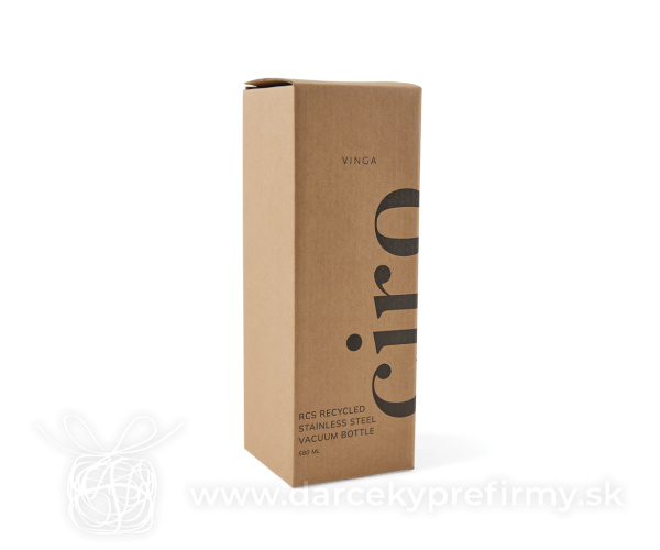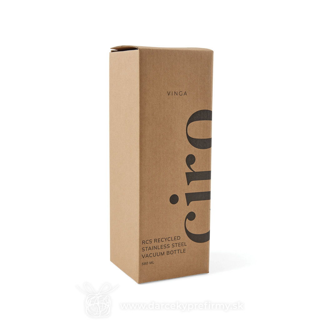 Termo fľaša VINGA Ciro 580ml z RCS recykl. ocele Ďaľšie varianty 18,61 € 18,61 € 18,61 € 18,61 € 18,61 € 18,61 € Elegantná termo fľaša Ciro s uzáverom z akáciového dreva s kovovým pútkom pre ľahký prenos. Akátové drevo je organický materiál, u ktorého sú rozdiely v odtieni a farbe prirodzenými vlastnosťami. Dvojitá stena z RCS certifikovanej recyklovanej ocele na uchovanie nápoja horúceho alebo studeného po dlhú dobu. RCS (Recycled Claim Standard) je globálny štandard, ktorý umožňuje overiť použitie recyklovaného materiálu v produkte naprieč celým dodávateľským reťazcom. Celkový podiel recyklátu podľa váhy produktu: 76%. Fľaša sa dá ľahko čistiť, iba na ručné umývanie. Balené v FSC® darčekovej kraftovej krabičke. Objem: 580 ml. 18,61 € (bez DPH) Rýchla objednávka Chcem poradiť Dostupnosť: Skladom do 48hod. 605 ks Rozmery: 22 x ø 7,5 cm Materiál: Recyklovaná nehrdzavejúca oceľ, Drevo Váha: 268g Potlač: tento predmet vieme potlačiť Vaším logom. Ohľadne ceny a technológie potlače, vrátane grafického návrhu s Vaším logom/textom nám prosím pošlite dopyt na info@darcekyprefirmy.sk Polia označené * sú povinné a musia byť vyplnené. Meno a Priezvisko (povinné pole) Firma (povinné pole) Email (povinné pole) Telefón Predpokladané odberné množstvo Správa (povinné pole) Odoslaním formulára súhlasíte so spracovaním osobných údajov Odoslať Odoslať Polia označené * sú povinné a musia byť vyplnené. Meno a Priezvisko (povinné pole) Firma (povinné pole) Email (povinné pole) Telefón Správa (povinné pole) Odoslaním formulára súhlasíte so spracovaním osobných údajov Odoslať Odoslať Mohlo by vás zaujímať Predchádzajúci slajd Následujúci slajd Celofarebná termo fľaša z RCS recyklovanej ocele 500ml 8,65 € (cena bez DPH) Vacobo - termoska 9,10 € (cena bez DPH) Celofarebná nerezová termo fľaša 750ml 13,30 € (cena bez DPH)