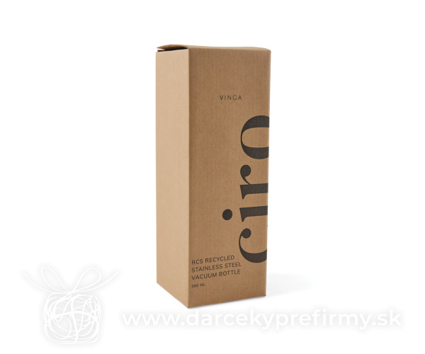 Termo fľaša VINGA Ciro 580ml z RCS recykl. ocele Ďaľšie varianty 18,61 € 18,61 € 18,61 € 18,61 € 18,61 € 18,61 € Elegantná termo fľaša Ciro s uzáverom z akáciového dreva s kovovým pútkom pre ľahký prenos. Akátové drevo je organický materiál, u ktorého sú rozdiely v odtieni a farbe prirodzenými vlastnosťami. Dvojitá stena z RCS certifikovanej recyklovanej ocele na uchovanie nápoja horúceho alebo studeného po dlhú dobu. RCS (Recycled Claim Standard) je globálny štandard, ktorý umožňuje overiť použitie recyklovaného materiálu v produkte naprieč celým dodávateľským reťazcom. Celkový podiel recyklátu podľa váhy produktu: 76%. Fľaša sa dá ľahko čistiť, iba na ručné umývanie. Balené v FSC® darčekovej kraftovej krabičke. Objem: 580 ml. 18,61 € (bez DPH) Rýchla objednávka Chcem poradiť Dostupnosť: Skladom do 48hod. 1143 ks Rozmery: 22 x ø 7,5 cm Materiál: Recyklovaná nehrdzavejúca oceľ, Drevo Váha: 268g Potlač: tento predmet vieme potlačiť Vaším logom. Ohľadne ceny a technológie potlače, vrátane grafického návrhu s Vaším logom/textom nám prosím pošlite dopyt na info@darcekyprefirmy.sk Polia označené * sú povinné a musia byť vyplnené. Meno a Priezvisko (povinné pole) Firma (povinné pole) Email (povinné pole) Telefón Predpokladané odberné množstvo Správa (povinné pole) Odoslaním formulára súhlasíte so spracovaním osobných údajov Odoslať Odoslať Polia označené * sú povinné a musia byť vyplnené. Meno a Priezvisko (povinné pole) Firma (povinné pole) Email (povinné pole) Telefón Správa (povinné pole) Odoslaním formulára súhlasíte so spracovaním osobných údajov Odoslať Odoslať Mohlo by vás zaujímať Predchádzajúci slajd Následujúci slajd Pacama - termohrnček 11,44 € (cena bez DPH) Termohrnček Coffee to go 6,16 € (cena bez DPH) Liberica - termohrnček 6,50 € (cena bez DPH)