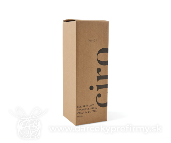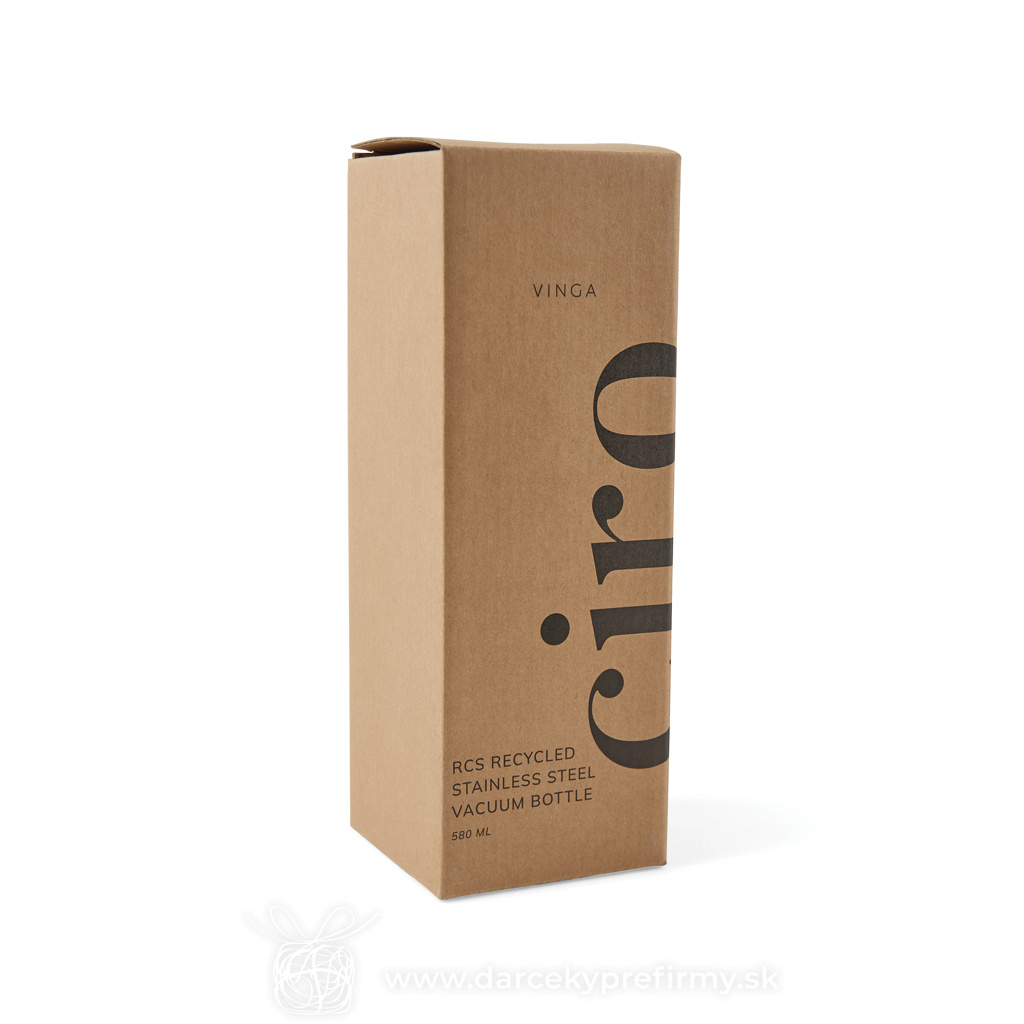 Termo fľaša VINGA Ciro 580ml z RCS recykl. ocele Ďaľšie varianty 18,61 € 18,61 € 18,61 € 18,61 € 18,61 € 18,61 € Elegantná termo fľaša Ciro s uzáverom z akáciového dreva s kovovým pútkom pre ľahký prenos. Akátové drevo je organický materiál, u ktorého sú rozdiely v odtieni a farbe prirodzenými vlastnosťami. Dvojitá stena z RCS certifikovanej recyklovanej ocele na uchovanie nápoja horúceho alebo studeného po dlhú dobu. RCS (Recycled Claim Standard) je globálny štandard, ktorý umožňuje overiť použitie recyklovaného materiálu v produkte naprieč celým dodávateľským reťazcom. Celkový podiel recyklátu podľa váhy produktu: 76%. Fľaša sa dá ľahko čistiť, iba na ručné umývanie. Balené v FSC® darčekovej kraftovej krabičke. Objem: 580 ml. 18,61 € (bez DPH) Rýchla objednávka Chcem poradiť Dostupnosť: Skladom do 48hod. 2200 ks Rozmery: 22 x ø 7,5 cm Materiál: Recyklovaná nehrdzavejúca oceľ, Drevo Váha: 268g Potlač: tento predmet vieme potlačiť Vaším logom. Ohľadne ceny a technológie potlače, vrátane grafického návrhu s Vaším logom/textom nám prosím pošlite dopyt na info@darcekyprefirmy.sk Polia označené * sú povinné a musia byť vyplnené. Meno a Priezvisko (povinné pole) Firma (povinné pole) Email (povinné pole) Telefón Predpokladané odberné množstvo Správa (povinné pole) Odoslaním formulára súhlasíte so spracovaním osobných údajov Odoslať Odoslať Polia označené * sú povinné a musia byť vyplnené. Meno a Priezvisko (povinné pole) Firma (povinné pole) Email (povinné pole) Telefón Správa (povinné pole) Odoslaním formulára súhlasíte so spracovaním osobných údajov Odoslať Odoslať Mohlo by vás zaujímať Predchádzajúci slajd Následujúci slajd Termohrnček s madlom Tana 900ml z RCS plastu 9,24 € (cena bez DPH) CreaCup Mini - termo hrnček na zákazku, vrchnák 1,30 € (cena bez DPH) COCOA - Termohrnek 400 ml 4,86 € (cena bez DPH)
