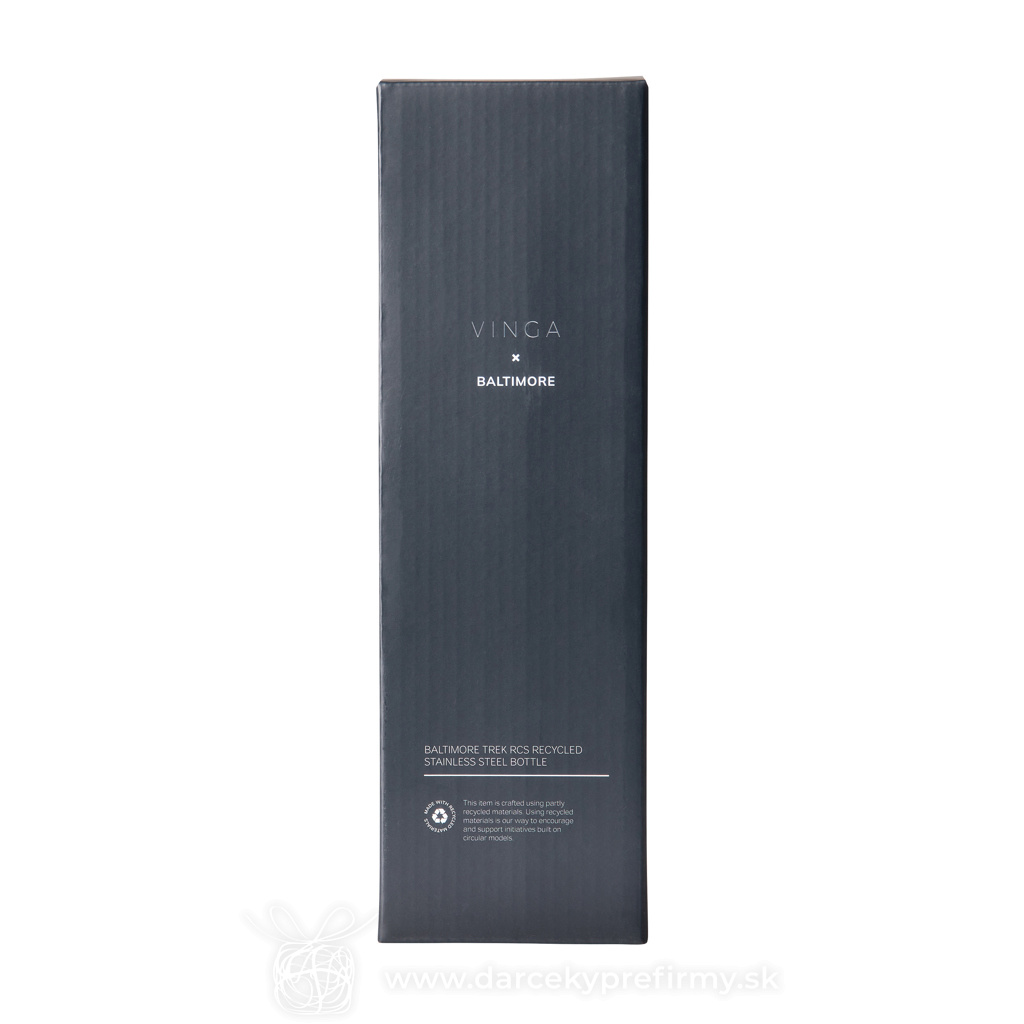 VINGA Termo fľaša Baltimore trek 600 ml z RCS recykl. ocele Ďaľšie varianty 18,55 € 18,55 € 18,55 € 18,55 € Odolná dvojstenná vákuová fľaša vyrobená z RCS certifikovanej recyklovanej nerezovej ocele s praktickým držadlom. Viečko má dva otvory: horná časť vhodná na pohodlné pitie a väčší otvor na jednoduché dopĺňanie a čistenie. Udrží nápoj studený až 12 hodín a teplý až 4 hodiny. Nie je vhodná do umývačky ani do mikrovlnnej rúry, iba ručné umývanie. Certifikované RCS (Recycled Claim Standard), certifikácia RCS zaručuje, že celý dodávateľský reťazec recyklovaných materiálov je certifikovaný. Celkový obsah recyklovaného materiálu je založený na celkovej hmotnosti výrobku. Tento produkt obsahuje 65% RCS certifikovanej recyklovanej nerezovej ocele. 18,55 € (bez DPH) Rýchla objednávka Chcem poradiť Dostupnosť: Skladom do 48hod. 9853 ks Rozmery: 25,8 x ø 7,2 cm Materiál: Recyklovaná nehrdzavejúca oceľ, PP Váha: 370g Potlač: tento predmet vieme potlačiť Vaším logom. Ohľadne ceny a technológie potlače, vrátane grafického návrhu s Vaším logom/textom nám prosím pošlite dopyt na info@darcekyprefirmy.sk Polia označené * sú povinné a musia byť vyplnené. Meno a Priezvisko (povinné pole) Firma (povinné pole) Email (povinné pole) Telefón Predpokladané odberné množstvo Správa (povinné pole) Odoslaním formulára súhlasíte so spracovaním osobných údajov Odoslať Odoslať Polia označené * sú povinné a musia byť vyplnené. Meno a Priezvisko (povinné pole) Firma (povinné pole) Email (povinné pole) Telefón Správa (povinné pole) Odoslaním formulára súhlasíte so spracovaním osobných údajov Odoslať Odoslať Mohlo by vás zaujímať Predchádzajúci slajd Následujúci slajd Arnoux - termo hrnček 8,45 € (cena bez DPH) Rebby - termohrnček 4,78 € (cena bez DPH) Cupper - termo hrnček s medenou izoláciou 9,36 € (cena bez DPH)