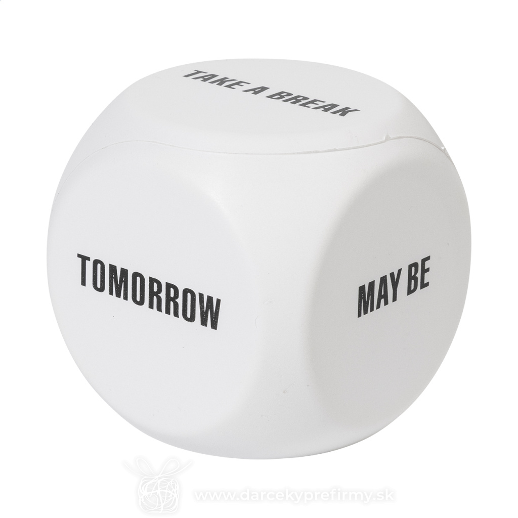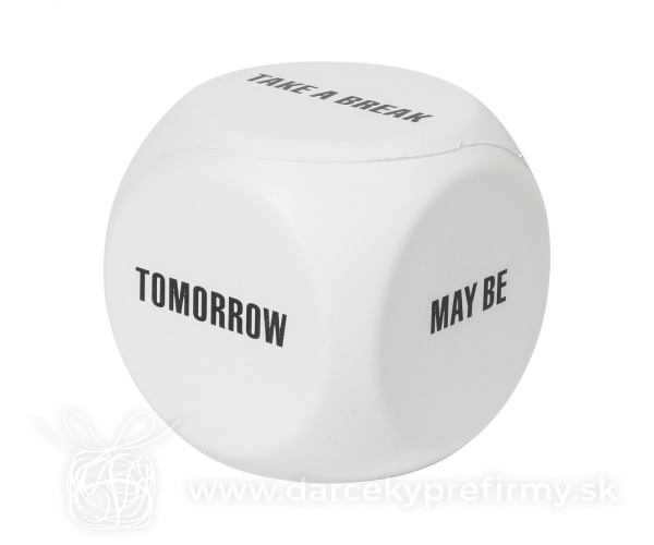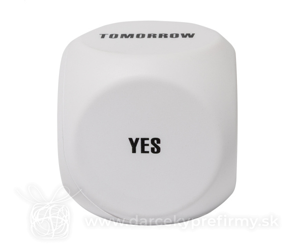 Verdict - antistres, pomôcka pri rozhodovaní Antistres v tvare kocky z PU peny s motívom rozhodovania. Obsahuje nasledujúce nápisy: Daj si pauzu, Zajtra, Možno, Áno, Nie a prázdnu stranu pre tlač. 1,69 € (bez DPH) Rýchla objednávka Chcem poradiť Dostupnosť: Skladom do 48hod. 8399 ks Rozmery: 65×65×65 mm Materiál: Pena PU Váha: 40g Potlač: tento predmet vieme potlačiť Vaším logom. Ohľadne ceny a technológie potlače, vrátane grafického návrhu s Vaším logom/textom nám prosím pošlite dopyt na info@darcekyprefirmy.sk Polia označené * sú povinné a musia byť vyplnené. Meno a Priezvisko (povinné pole) Firma (povinné pole) Email (povinné pole) Telefón Predpokladané odberné množstvo Správa (povinné pole) Odoslaním formulára súhlasíte so spracovaním osobných údajov Odoslať Odoslať Polia označené * sú povinné a musia byť vyplnené. Meno a Priezvisko (povinné pole) Firma (povinné pole) Email (povinné pole) Telefón Správa (povinné pole) Odoslaním formulára súhlasíte so spracovaním osobných údajov Odoslať Odoslať Mohlo by vás zaujímať Predchádzajúci slajd Následujúci slajd Adora - antistresové srdiečko 0,73 € (cena bez DPH) Kick - antistresová loptička 0,73 € (cena bez DPH) Islan - antistresový prívesok na kľúče 0,61 € (cena bez DPH)