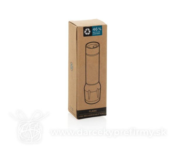 Flara RCS USB nabíjateľné svietidlo z rec. plastu Flara je kompaktné a spoľahlivé svietidlo pre každodenné použitie. Matné čierne telo z 46 % recyklovaného ABS (RCS) ukrýva dobíjateľnú 500 mAh Li-ion batériu s výdržou až 6 hodín a dobíjaním za 1 h 40 min cez priložený 30 cm USB-C ↔ USB-C kábel z recyklovaného RTPE. Svietidlo s jednou XPE diódou ponúka tri režimy: 100 %, 50 % a blikanie (80 lm / 1 W). Čierne polyesterové pútko umožňuje jednoduché prenášanie. Vyrobené z recyklovaného ABS (RCS). RCS (Recycled Claim Standard) je štandard na overenie recyklovaného obsahu produktu v rámci celého dodávateľského reťazca. Celkový podiel recyklátu: 46 %. Produkt je bez PVC a balený v FSC® kraftovej krabičke. | Vstup: 5 V / 1 A. 6,16 € (bez DPH) Rýchla objednávka Chcem poradiť Dostupnosť: Skladom do 48hod. 679 ks Rozmery: 9,8 x ø 3,1 cm Materiál: Recyklované ABS Váha: 39,3g Potlač: tento predmet vieme potlačiť Vaším logom. Ohľadne ceny a technológie potlače, vrátane grafického návrhu s Vaším logom/textom nám prosím pošlite dopyt na info@darcekyprefirmy.sk Polia označené * sú povinné a musia byť vyplnené. Meno a Priezvisko (povinné pole) Firma (povinné pole) Email (povinné pole) Telefón Predpokladané odberné množstvo Správa (povinné pole) Odoslaním formulára súhlasíte so spracovaním osobných údajov Odoslať Odoslať Polia označené * sú povinné a musia byť vyplnené. Meno a Priezvisko (povinné pole) Firma (povinné pole) Email (povinné pole) Telefón Správa (povinné pole) Odoslaním formulára súhlasíte so spracovaním osobných údajov Odoslať Odoslať Mohlo by vás zaujímať Predchádzajúci slajd Následujúci slajd Malé USB pracovné svietidlo Gear X z RCS recykl. plastu 16,06 € (cena bez DPH) Cobiner - mini RABS baterka 3,64 € (cena bez DPH) Latto - baterka 1,55 € (cena bez DPH)