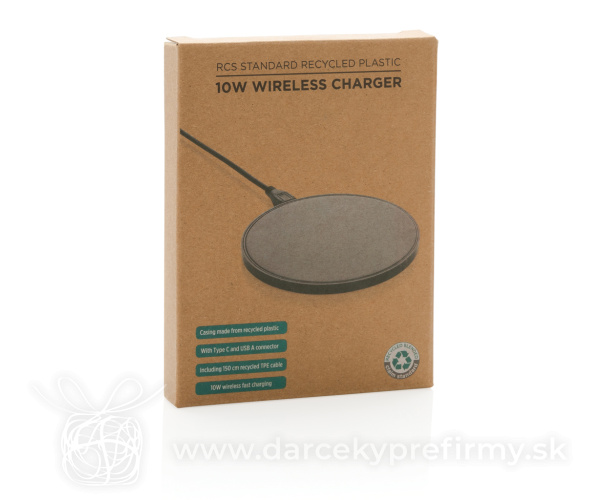 Bezdrôtová nabíjačka 10W z RCS recyklovaného plastu Ďaľšie varianty 14,90 € Bezdrôtová nabíjačka s výkonom 10W a duálnym napájacím káblom (USB A a USB C). Produkt je vyrobený z recyklovaného ABS plastu s RCS certifikáciou, kábel z recyklovaného TPE. RCS (Recycled Claim Standard) je globálny štandard, ktorý umožňuje overiť použitie recyklovaného materiálu v produktu naprieč celým dodávateľským reťazcom. Celkový podiel recyklátu podľa váhy produktu: 58%. Kompatibilné so všetkými zariadeniami podporujúcimi Qi ako sú najnovšie generácie Android a iPhone 8 a vyššie. Vstup: 9V/1.5A; bezdrôtový výstup: 9V/1.1A 10W. Vrátane 1,5m dlhého duálneho napájacieho kábla. Výrobok je kompletne bez PVC. 14,90 € (bez DPH) Rýchla objednávka Chcem poradiť Dostupnosť: Skladom do 48hod. 1906 ks Rozmery: 0,7 x ø 10,1 cm Materiál: Recyklovaná ABS, Recyklovaná TPE Váha: 52g Potlač: tento predmet vieme potlačiť Vaším logom. Ohľadne ceny a technológie potlače, vrátane grafického návrhu s Vaším logom/textom nám prosím pošlite dopyt na info@darcekyprefirmy.sk Polia označené * sú povinné a musia byť vyplnené. Meno a Priezvisko (povinné pole) Firma (povinné pole) Email (povinné pole) Telefón Predpokladané odberné množstvo Správa (povinné pole) Odoslaním formulára súhlasíte so spracovaním osobných údajov Odoslať Odoslať Polia označené * sú povinné a musia byť vyplnené. Meno a Priezvisko (povinné pole) Firma (povinné pole) Email (povinné pole) Telefón Správa (povinné pole) Odoslaním formulára súhlasíte so spracovaním osobných údajov Odoslať Odoslať Mohlo by vás zaujímať Predchádzajúci slajd Následujúci slajd RECPAD - Bezdrátová 15W nabíječka 3v1 17,19 € (cena bez DPH) Bezdrôtová nabíjačka 10W s USB výstupmi z RCS recykl. plastu 12,35 € (cena bez DPH) RESS - Bezdrát. nabíječka se sklem 10,04 € (cena bez DPH)