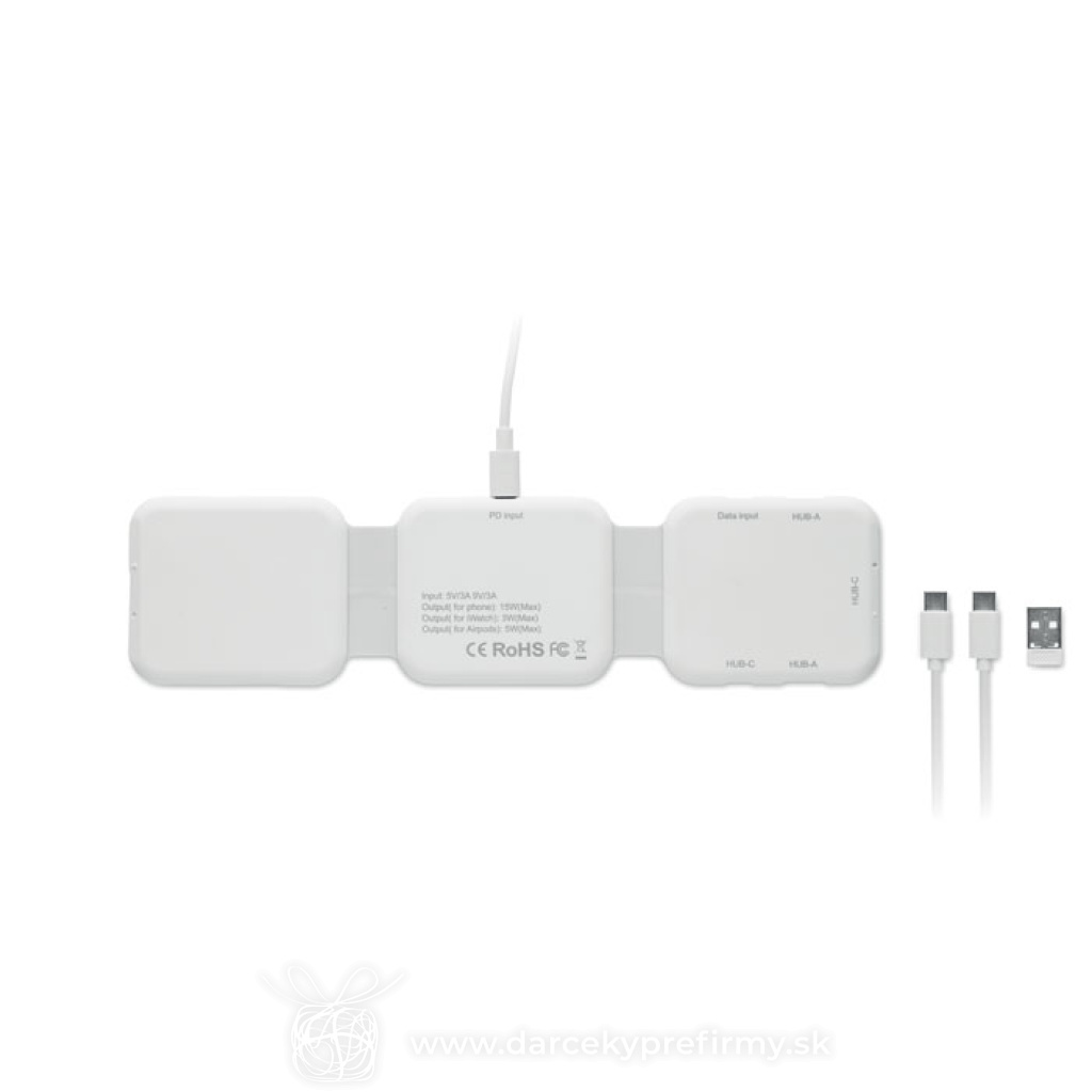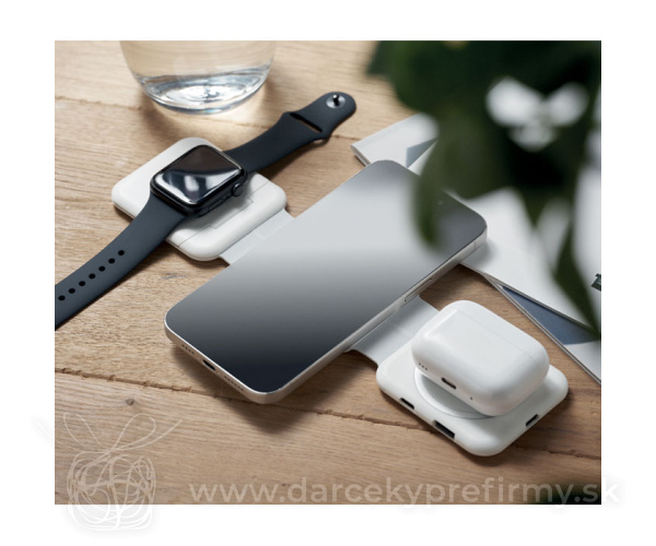 ROIS - Skládací nabíjací stanice Magnetická nabíjacia stanica z ABS. 3 plochy pre bezdrátové nabíjanie. 1x 15 W, 1x 5 W pre TWS a 1 nabíječka pre Apple Watch (3 W). 2 konektory Type-C a 2 konektory USB-A. Integrovaný kábel. 23,15 € (bez DPH) Rýchla objednávka Chcem poradiť Dostupnosť: Skladom do 48hod. 1623 ks Rozmery: 26 x 6,5 x 0,86cm Váha: 130g Potlač: tento predmet vieme potlačiť Vaším logom. Ohľadne ceny a technológie potlače, vrátane grafického návrhu s Vaším logom/textom nám prosím pošlite dopyt na info@darcekyprefirmy.sk Polia označené * sú povinné a musia byť vyplnené. Meno a Priezvisko (povinné pole) Firma (povinné pole) Email (povinné pole) Telefón Predpokladané odberné množstvo Správa (povinné pole) Odoslaním formulára súhlasíte so spracovaním osobných údajov Odoslať Odoslať Polia označené * sú povinné a musia byť vyplnené. Meno a Priezvisko (povinné pole) Firma (povinné pole) Email (povinné pole) Telefón Správa (povinné pole) Odoslaním formulára súhlasíte so spracovaním osobných údajov Odoslať Odoslať Mohlo by vás zaujímať Predchádzajúci slajd Následujúci slajd WIRELESS PLATO - Bezdrátová nabíječka 3,17 € (cena bez DPH) WIRESTAND - Bezdrátová nabíječka/stojánek 11,18 € (cena bez DPH) MELIS - Přenosná magnetická nabíječka 14,76 € (cena bez DPH)