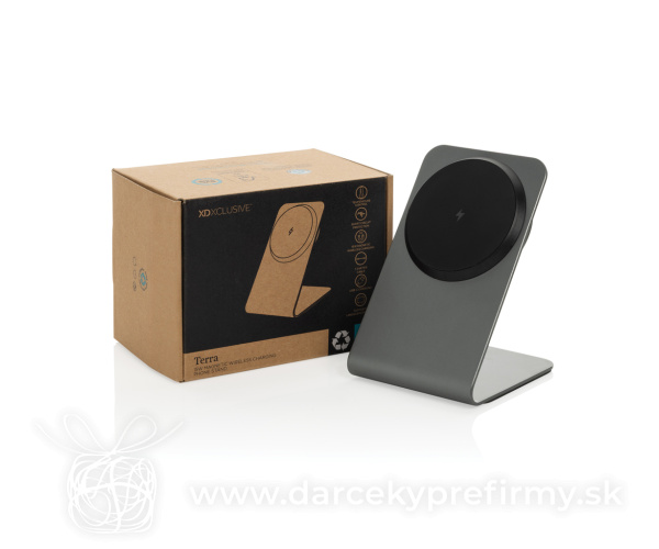 Terra hliníkový stojan na tel. s bezdrôt. nabíjaním 15W Terra hliníkový stojan na telefón s magnetickým bezdrôtovým nabíjaním s výkonom 15W nanovo definuje sofistikovanosť a výkon. Vďaka pokročilému magnetickému systému poskytuje výkon 15W a pevné držanie vášho zariadenia. S 15 presnými magnetmi zaisťuje bezchybné zarovnanie pre efektívne nabíjanie, či už horizontálne alebo vertikálne. Silikónové podložky na spodnej strane zvyšujú stabilitu a vstavaný indikátor nabíjania mu dodáva nenápadnú eleganciu. Stojan Terra je vyrobený z recyklovaného hliníka s certifikáciou RCS a AVS, kombinuje rafinovaný dizajn s nízkym dopadom. RCS (Recycled Claim Standard) overuje recyklovaný obsah v celom dodávateľskom reťazci. Vyrobené zo 68 % recyklovaného obsahu na základe hmotnosti položky. Je úplne bez PVC a je zabalený v kraftovej krabici s certifikátom FSC, čo posilňuje jeho ekologický prístup. Stojan obsahuje 120 cm dlhý kábel USB-C na USB-C vyrobený z recyklovaného TPE s certifikáciou RCS. Vstup USB-C: 9V/2,22A. 18,55 € (bez DPH) Rýchla objednávka Chcem poradiť Dostupnosť: Skladom do 48hod. 6822 ks Rozmery: 6,9 x 7,8 x 10,4 cm Materiál: Recyklovaná hliníková zliatina, Recyklovaná ABS Váha: 118g Potlač: tento predmet vieme potlačiť Vaším logom. Ohľadne ceny a technológie potlače, vrátane grafického návrhu s Vaším logom/textom nám prosím pošlite dopyt na info@darcekyprefirmy.sk Polia označené * sú povinné a musia byť vyplnené. Meno a Priezvisko (povinné pole) Firma (povinné pole) Email (povinné pole) Telefón Predpokladané odberné množstvo Správa (povinné pole) Odoslaním formulára súhlasíte so spracovaním osobných údajov Odoslať Odoslať Polia označené * sú povinné a musia byť vyplnené. Meno a Priezvisko (povinné pole) Firma (povinné pole) Email (povinné pole) Telefón Správa (povinné pole) Odoslaním formulára súhlasíte so spracovaním osobných údajov Odoslať Odoslať Mohlo by vás zaujímať Predchádzajúci slajd Následujúci slajd Nabíjacia podložka 3v1 15W Magnapad z RCS recykl. plastu 16,06 € (cena bez DPH) BLOCK - Bezdrátová nabíječka 15 W 16,43 € (cena bez DPH) ORIO - Skládací nabíjací stanice 15,23 € (cena bez DPH)