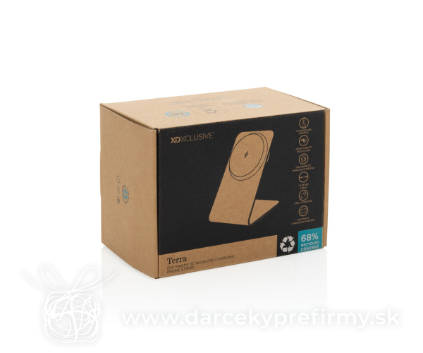 Terra hliníkový stojan na tel. s bezdrôt. nabíjaním 15W Terra hliníkový stojan na telefón s magnetickým bezdrôtovým nabíjaním s výkonom 15W nanovo definuje sofistikovanosť a výkon. Vďaka pokročilému magnetickému systému poskytuje výkon 15W a pevné držanie vášho zariadenia. S 15 presnými magnetmi zaisťuje bezchybné zarovnanie pre efektívne nabíjanie, či už horizontálne alebo vertikálne. Silikónové podložky na spodnej strane zvyšujú stabilitu a vstavaný indikátor nabíjania mu dodáva nenápadnú eleganciu. Stojan Terra je vyrobený z recyklovaného hliníka s certifikáciou RCS a AVS, kombinuje rafinovaný dizajn s nízkym dopadom. RCS (Recycled Claim Standard) overuje recyklovaný obsah v celom dodávateľskom reťazci. Vyrobené zo 68 % recyklovaného obsahu na základe hmotnosti položky. Je úplne bez PVC a je zabalený v kraftovej krabici s certifikátom FSC, čo posilňuje jeho ekologický prístup. Stojan obsahuje 120 cm dlhý kábel USB-C na USB-C vyrobený z recyklovaného TPE s certifikáciou RCS. Vstup USB-C: 9V/2,22A. 18,55 € (bez DPH) Rýchla objednávka Chcem poradiť Dostupnosť: Skladom do 48hod. 4302 ks Rozmery: 6,9 x 7,8 x 10,4 cm Materiál: Recyklovaná hliníková zliatina, Recyklovaná ABS Váha: 118g Potlač: tento predmet vieme potlačiť Vaším logom. Ohľadne ceny a technológie potlače, vrátane grafického návrhu s Vaším logom/textom nám prosím pošlite dopyt na info@darcekyprefirmy.sk Polia označené * sú povinné a musia byť vyplnené. Meno a Priezvisko (povinné pole) Firma (povinné pole) Email (povinné pole) Telefón Predpokladané odberné množstvo Správa (povinné pole) Odoslaním formulára súhlasíte so spracovaním osobných údajov Odoslať Odoslať Polia označené * sú povinné a musia byť vyplnené. Meno a Priezvisko (povinné pole) Firma (povinné pole) Email (povinné pole) Telefón Správa (povinné pole) Odoslaním formulára súhlasíte so spracovaním osobných údajov Odoslať Odoslať Mohlo by vás zaujímať Predchádzajúci slajd Následujúci slajd Bambusová bezdrôtová nabíjačka 5W 8,65 € (cena bez DPH) VoltPerch bezdrôtová magn. nabíjačka 15W z rec. RCS plastu 16,15 € (cena bez DPH) Bezdrôtová nabíjačka 5W z pšeničnej slamy 8,63 € (cena bez DPH)