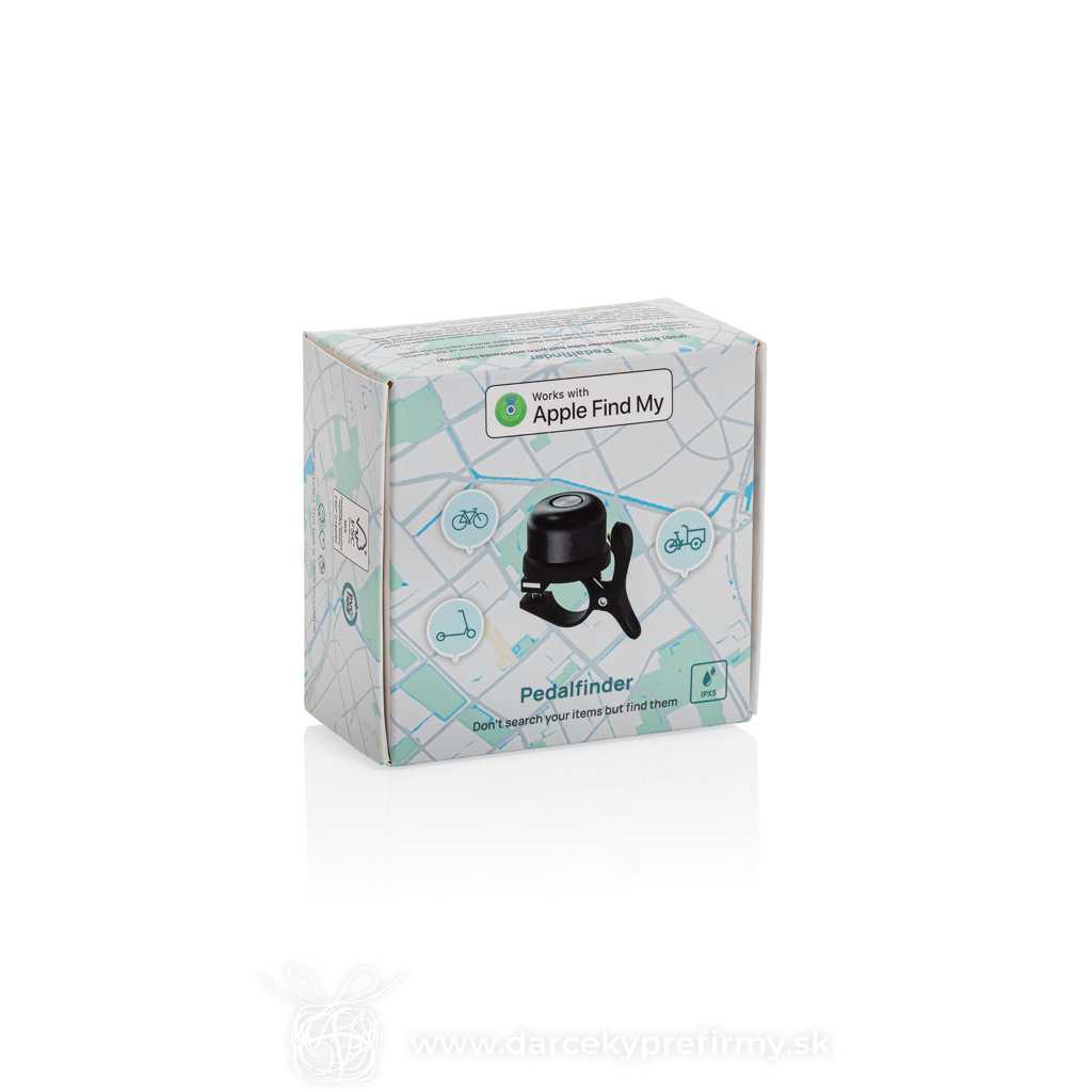 Zvonček na bicykel s lokátorom Pedalfinder So zvončekom na bicykel Pedal Finder s integrovanou technológiou už nikdy nestratíte váš bicykel. S Pedal Finderom dostanete okamžité upozornenie, pokiaľ bicykel niekde zabudnete. Ak sa stratí, môžete ho jednoducho sledovať kdekoľvek na svete pomocou aplikácie Find My (Nájsť) od spoločnosti Apple. Akonáhle budete blízko môžete aktivovať zvuk a bicykel presne lokalizovať. Pedal Finder je napájaný sadou batérií s dlhou životnosťou, ktoré zaistia až 12 mesiacov prevádzky, než je potrebné ich vymeniť. Je navrhnutý s ohľadom na odolnosť a je tiež vodotesný podľa normy IPX5. Balené v darčekovom balení FSC®. 24,80 € (bez DPH) Rýchla objednávka Chcem poradiť Dostupnosť: Skladom do 48hod. 3358 ks Rozmery: 4 x 5 x 6 cm Materiál: ABS Váha: 48g Potlač: tento predmet vieme potlačiť Vaším logom. Ohľadne ceny a technológie potlače, vrátane grafického návrhu s Vaším logom/textom nám prosím pošlite dopyt na info@darcekyprefirmy.sk Polia označené * sú povinné a musia byť vyplnené. Meno a Priezvisko (povinné pole) Firma (povinné pole) Email (povinné pole) Telefón Predpokladané odberné množstvo Správa (povinné pole) Odoslaním formulára súhlasíte so spracovaním osobných údajov Odoslať Odoslať Polia označené * sú povinné a musia byť vyplnené. Meno a Priezvisko (povinné pole) Firma (povinné pole) Email (povinné pole) Telefón Správa (povinné pole) Odoslaním formulára súhlasíte so spracovaním osobných údajov Odoslať Odoslať Mohlo by vás zaujímať Predchádzajúci slajd Následujúci slajd Pancho - futbalová lopta 4,68 € (cena bez DPH) ENJOW - Netkaná poduška 1,98 € (cena bez DPH) FLAG FUN - Sluneční brýle s vlajkami 1,26 € (cena bez DPH)