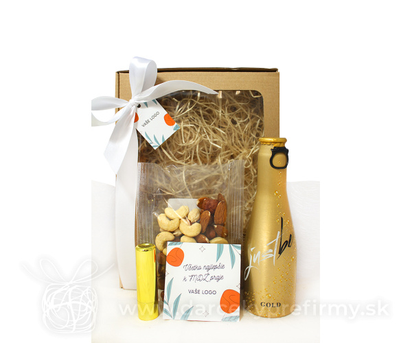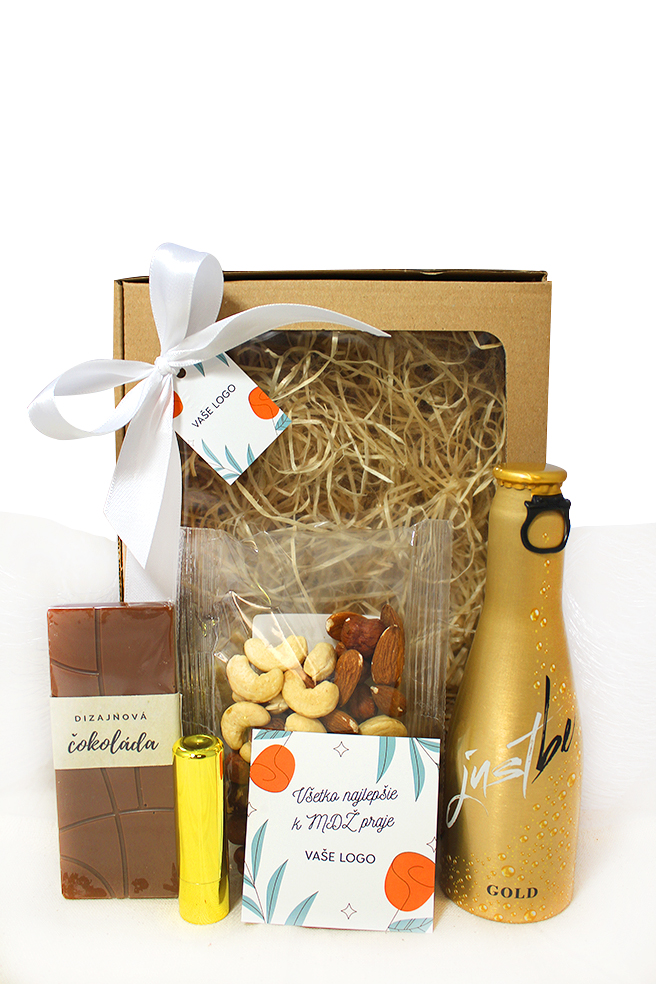 DÁMSKY BALÍČEK S PROSECCOM II MDŽ BALENIA OD 20 KS Krásne balenie pre dámy, od 20 ks s možnosťou potlače kozmetickej taštičky 12,80 € (bez DPH) Rýchla objednávka Chcem poradiť Dostupnosť: Minimálne odberné množstvo 20 Potlač: tento predmet vieme potlačiť Vaším logom. Ohľadne ceny a technológie potlače, vrátane grafického návrhu s Vaším logom/textom nám prosím pošlite dopyt na info@darcekyprefirmy.sk Informácie o DÁMSKY BALÍČEK S PROSECCOM II čokoláda 30gr mliečna s ovocím a orechami, s vlastnou etiketou prosecco 0,2l mix orechov mandle, lieskovce, kešu balzám vanilka, SPF10, kovový vzhľad tyčinky natur krabica s okienkom, výplňou a stuhou, rozmer 230 x 170 x 90 mm Druhý obrázok v galérii - balenie bez čokolády bude v cene 11€/KS bez DPH Pri vyšších odberoch individuálna zľava. Vyžiadajte si ponuku. Pre nižší ako min. odber platia upravené ceny (informujte sa). DARCEKYPREFIRMY_komplimentky_vzorkovnik_2025Objednávka krok po kroku Polia označené * sú povinné a musia byť vyplnené. Meno a Priezvisko (povinné pole) Firma (povinné pole) Email (povinné pole) Telefón Predpokladané odberné množstvo Správa (povinné pole) Odoslaním formulára súhlasíte so spracovaním osobných údajov Odoslať Odoslať Polia označené * sú povinné a musia byť vyplnené. Meno a Priezvisko (povinné pole) Firma (povinné pole) Email (povinné pole) Telefón Správa (povinné pole) Odoslaním formulára súhlasíte so spracovaním osobných údajov Odoslať Odoslať Mohlo by vás zaujímať Predchádzajúci slajd Následujúci slajd VIP ZLATÁ DEBNIČKA 89,00 € (cena bez DPH) TERMOSKA SET S PROSECCOM 21,00 € (cena bez DPH) BESTSELLER MALÁ VIANOČNÁ KRABIČKA 11,50 € (cena bez DPH) ZIMA 2025/26