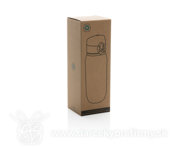 Uzamykateľná fľaša na vodu Yide 600ml RCS RPET Ďaľšie varianty 9,88 € 9,88 € Fľaša na vodu s nepriepustným uzamykateľným uzáverom. Jednoduché ovládanie aj jednou rukou. Vyrobená z RCS recyklovaného PET plastu. RCS (Recycled Claim Standard) je globálny štandard, ktorý umožňuje overiť použitie recyklovaného materiálu v produkte naprieč celým dodávateľským reťazcom. Celkový podiel recyklátu podľa váhy produktu: 73%. Len na studené nápoje a na ručné umývanie. Bez BPA. Objem: 600 ml. Balené v FSC® kraftovej darčekovej krabičke. 9,88 € (bez DPH) Rýchla objednávka Chcem poradiť Dostupnosť: Skladom do 48hod. 4042 ks Rozmery: 21,4 x ø 7,4 cm Materiál: rPET, PP Váha: 141g Potlač: tento predmet vieme potlačiť Vaším logom. Ohľadne ceny a technológie potlače, vrátane grafického návrhu s Vaším logom/textom nám prosím pošlite dopyt na info@darcekyprefirmy.sk Polia označené * sú povinné a musia byť vyplnené. Meno a Priezvisko (povinné pole) Firma (povinné pole) Email (povinné pole) Telefón Predpokladané odberné množstvo Správa (povinné pole) Odoslaním formulára súhlasíte so spracovaním osobných údajov Odoslať Odoslať Polia označené * sú povinné a musia byť vyplnené. Meno a Priezvisko (povinné pole) Firma (povinné pole) Email (povinné pole) Telefón Správa (povinné pole) Odoslaním formulára súhlasíte so spracovaním osobných údajov Odoslať Odoslať Mohlo by vás zaujímať Predchádzajúci slajd Následujúci slajd Khumbu - RSS izolovaná fľaša 10,14 € (cena bez DPH) Ganga - sklenená flaša 1,56 € (cena bez DPH) Cortex - RPET fľaša 2,47 € (cena bez DPH)
