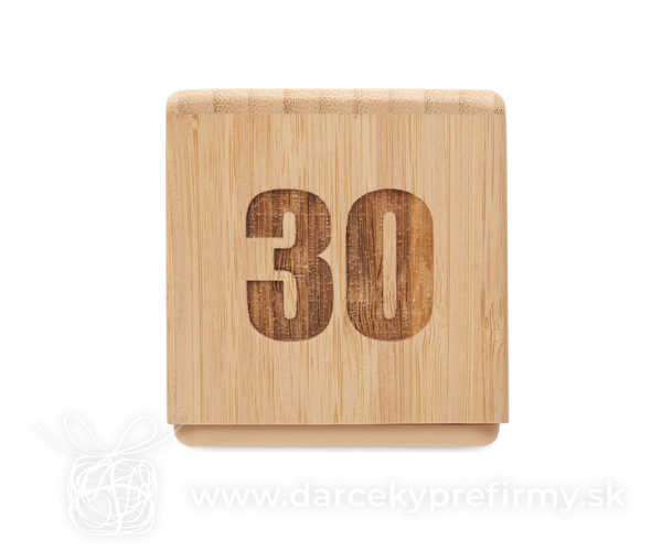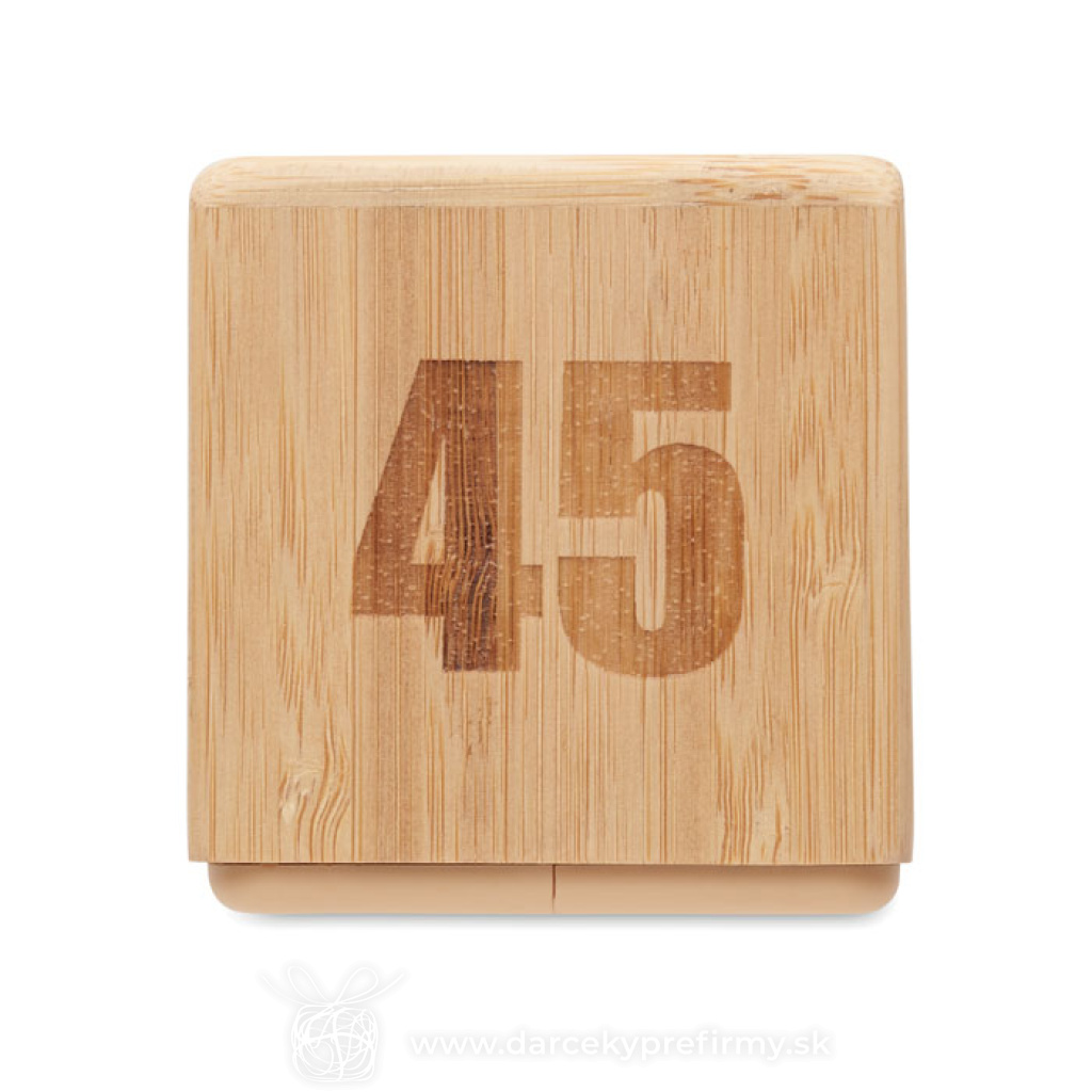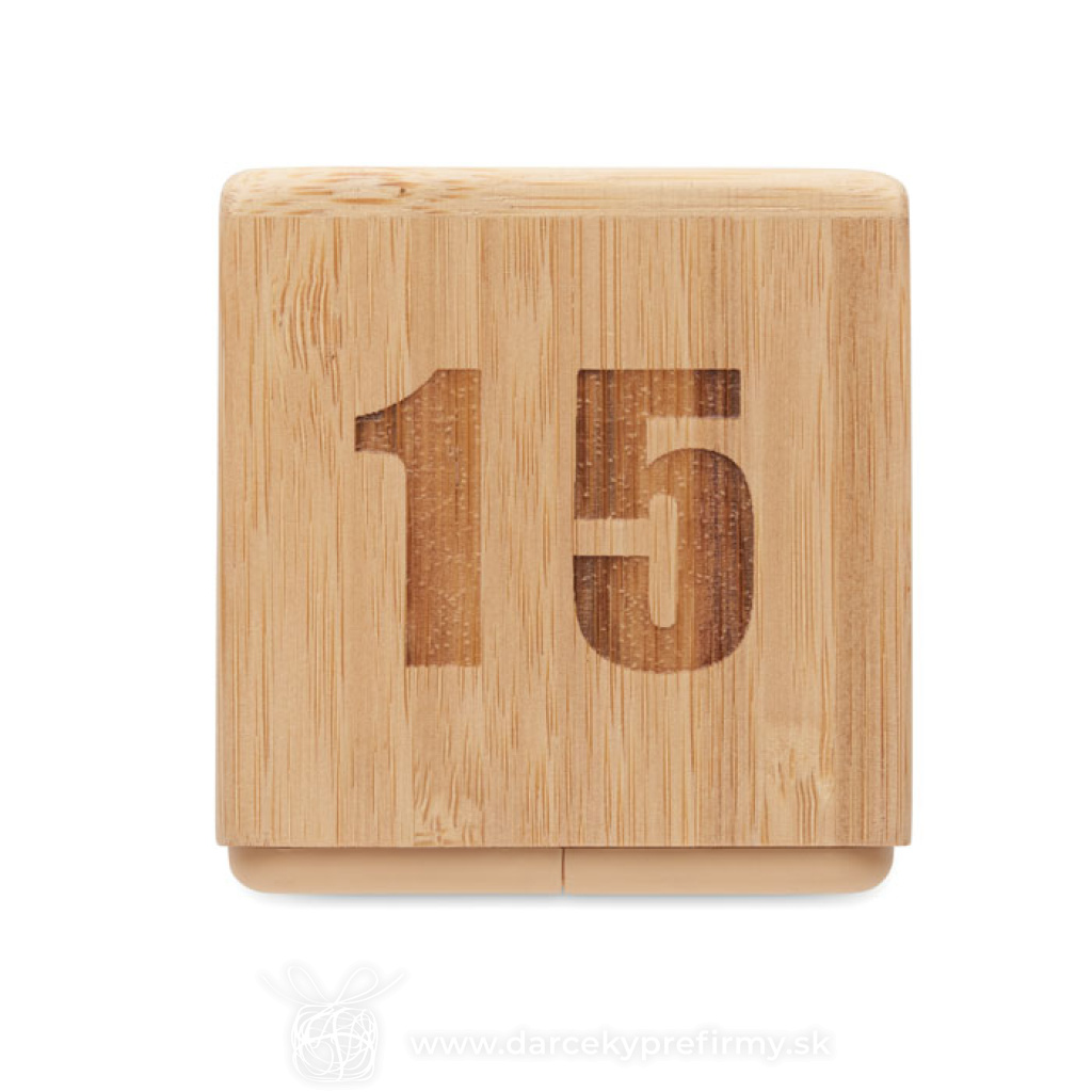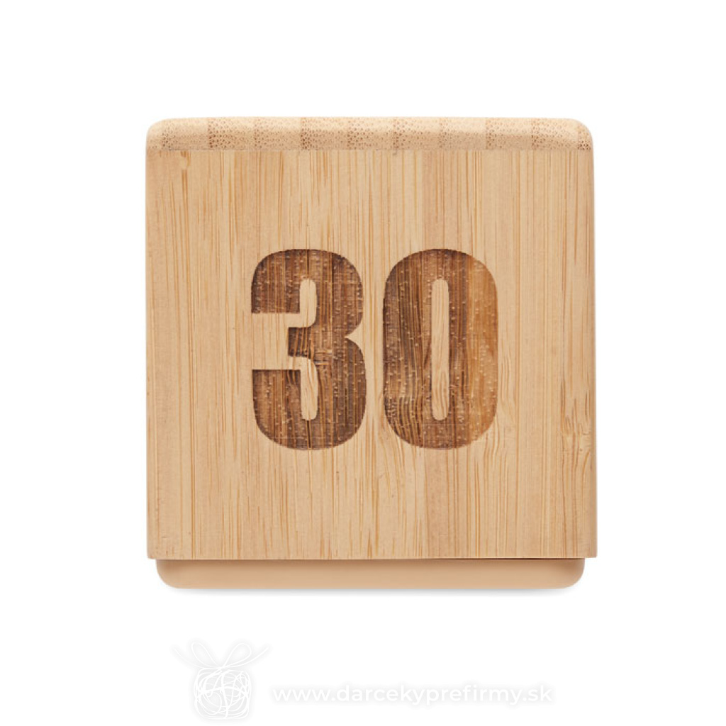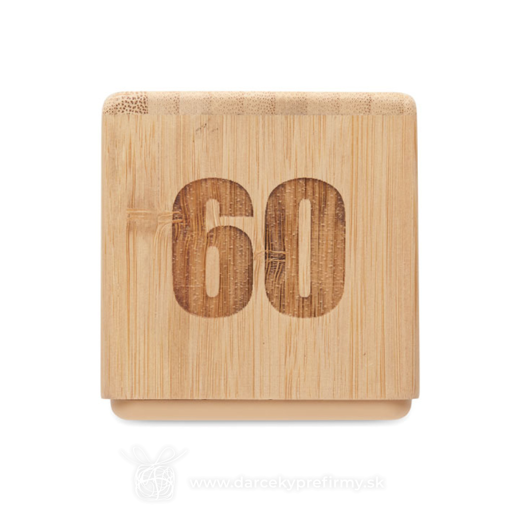 CURT - Bambusová minútka Bambusový otočný časovač s odpočítavaním času, minútka. Napájanie z 2 AAA batérií (nie sú súčasťou dodávky). 10,23 € (bez DPH) Rýchla objednávka Chcem poradiť Dostupnosť: Skladom do 48hod. 2814 ks Rozmery: 6.9 x 6.9 x 6.75cm Váha: 100g Potlač: tento predmet vieme potlačiť Vaším logom. Ohľadne ceny a technológie potlače, vrátane grafického návrhu s Vaším logom/textom nám prosím pošlite dopyt na info@darcekyprefirmy.sk Polia označené * sú povinné a musia byť vyplnené. Meno a Priezvisko (povinné pole) Firma (povinné pole) Email (povinné pole) Telefón Predpokladané odberné množstvo Správa (povinné pole) Odoslaním formulára súhlasíte so spracovaním osobných údajov Odoslať Odoslať Polia označené * sú povinné a musia byť vyplnené. Meno a Priezvisko (povinné pole) Firma (povinné pole) Email (povinné pole) Telefón Správa (povinné pole) Odoslaním formulára súhlasíte so spracovaním osobných údajov Odoslať Odoslať Mohlo by vás zaujímať Predchádzajúci slajd Následujúci slajd LumaRise RCS budík s bielym šumom z recyklovaného plastu 18,61 € (cena bez DPH) CUCKOO - Budík vo štýle kukaček z MDF 22,55 € (cena bez DPH) Sandy - presýpacie hodiny 0,73 € (cena bez DPH)