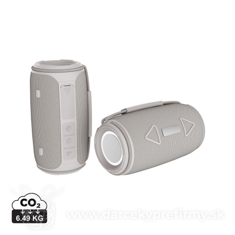 Prisma vodeodolný IPX 4, 16W reproduktor z rec. plastu RCS Ďaľšie varianty 43,41 € 43,41 € Prisma 16W reproduktor z recyklovaného plastu RCS spája výnimočný zvukový výkon s odolnosťou a ohľadom na životné prostredie. Vďaka výkonu 16 W a dvojitými subwoofermi poskytuje hlboké basy a čistý zvuk pre pohlcujúci zážitok z počúvania. S krytím IPX4 je odolný voči striekajúcej vode a slabému dažďu, vďaka čomu je ideálny pre vnútorné aj vonk. použitie. Integrovaná rukoväť na prenášanie a nabíjateľná lítium-iónová batéria s kapacitou 1 500 mAh poskytujú prenosnosť a až 7 hodín prehrávania pri 50 % hlasitosti, zatiaľ čo BT 5.3 zaisťuje bezproblémové pripojenie a automatické párovanie. Reproduktor obsahuje aj mikrofón a funkciu prijatia hovoru pre hands-free telefonovanie. Telo produktu je vyrobené z rec. ABS plastu a textílie RPET s cert. RCS. RCS (Recycled Claim Standard) je štandard na overenie rec. obsahu produktu v rámci celého dod. reťazca. Celkový rec. obsah: 37 % na základe celk. hmotnosti položky. Tento reproduktor neobsahuje PVC a je zabalený v kraftovej krabici s cert. FSC. 43,41 € (bez DPH) Rýchla objednávka Chcem poradiť Dostupnosť: Skladom do 48hod. 1276 ks Rozmery: 10,3 x 9,6 x 18,3 cm Materiál: Recyklovaná ABS, rPET Váha: 640g Potlač: tento predmet vieme potlačiť Vaším logom. Ohľadne ceny a technológie potlače, vrátane grafického návrhu s Vaším logom/textom nám prosím pošlite dopyt na info@darcekyprefirmy.sk Polia označené * sú povinné a musia byť vyplnené. Meno a Priezvisko (povinné pole) Firma (povinné pole) Email (povinné pole) Telefón Predpokladané odberné množstvo Správa (povinné pole) Odoslaním formulára súhlasíte so spracovaním osobných údajov Odoslať Odoslať Polia označené * sú povinné a musia byť vyplnené. Meno a Priezvisko (povinné pole) Firma (povinné pole) Email (povinné pole) Telefón Správa (povinné pole) Odoslaním formulára súhlasíte so spracovaním osobných údajov Odoslať Odoslať Mohlo by vás zaujímať Predchádzajúci slajd Následujúci slajd Chorus - bezdrôtové slúchadlá 13,46 € (cena bez DPH) ROUND LUX - Bambus. bezdrátový reproduktor 8,62 € (cena bez DPH) OBLO - Bezdrátový 5W reproduktor 13,46 € (cena bez DPH)