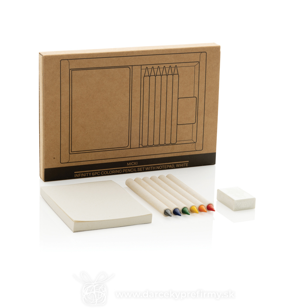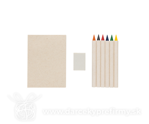Sada 6ks farebných nekonečných ceruziek so zápisníkom Micki Certifikovaná sada 6 ks ceruziek Micki GRS Infinity so zápisníkom je ideálna pre všetky kreatívne projekty. Táto sada obsahuje šesť žiarivých farieb: červenú, žltú, modrú, zelenú, oranžovú a čiernu, každá s dĺžkou 9 cm. Ceruzky sú vyrobené z 69% recyklovaného papiera z mliečnych kartónov s certifikáciou GRS a majú hladký grafitový hrot pre ľahké vyfarbovanie. Spolu s ceruzkami sada obsahuje poznámkový blok s 50 listami, ktorý je ideálny na skicovanie alebo zapisovanie nápadov. Ceruzky sú dodávané v kraftovom obale FSC®. Tradičné farebné ceruzky vydržia písať približne 200 metrov, ale tieto ceruzky Tree-Free Infinity zvládnu napísať až 20 000 metrov. Dodávané s gumou. 2,47 € (bez DPH) Rýchla objednávka Chcem poradiť Dostupnosť: Skladom do 48hod. 9174 ks Rozmery: 17 x 11,5 x 1,5 cm Materiál: Papier, Grafit Váha: 52,8g Potlač: tento predmet vieme potlačiť Vaším logom. Ohľadne ceny a technológie potlače, vrátane grafického návrhu s Vaším logom/textom nám prosím pošlite dopyt na info@darcekyprefirmy.sk Polia označené * sú povinné a musia byť vyplnené. Meno a Priezvisko (povinné pole) Firma (povinné pole) Email (povinné pole) Telefón Predpokladané odberné množstvo Správa (povinné pole) Odoslaním formulára súhlasíte so spracovaním osobných údajov Odoslať Odoslať Polia označené * sú povinné a musia byť vyplnené. Meno a Priezvisko (povinné pole) Firma (povinné pole) Email (povinné pole) Telefón Správa (povinné pole) Odoslaním formulára súhlasíte so spracovaním osobných údajov Odoslať Odoslať Mohlo by vás zaujímať Predchádzajúci slajd Následujúci slajd Penxil 4 - sada 4 ks ceruziek na zákazku 1,13 € (cena bez DPH) Condala - sada mandala na farbenie 0,75 € (cena bez DPH) Gallery 12 - sada farbičiek 0,79 € (cena bez DPH)