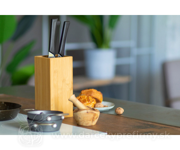 Santoku - bambusový držiak na nože Univerzálny bambusový držiak na nože s plastovými štetinami. 17,86 € (bez DPH) Rýchla objednávka Chcem poradiť Dostupnosť: Skladom do 48hod. 834 ks Rozmery: 100×100×225 mm Materiál: Bambus Váha: 1250g Potlač: tento predmet vieme potlačiť Vaším logom. Ohľadne ceny a technológie potlače, vrátane grafického návrhu s Vaším logom/textom nám prosím pošlite dopyt na info@darcekyprefirmy.sk Polia označené * sú povinné a musia byť vyplnené. Meno a Priezvisko (povinné pole) Firma (povinné pole) Email (povinné pole) Telefón Predpokladané odberné množstvo Správa (povinné pole) Odoslaním formulára súhlasíte so spracovaním osobných údajov Odoslať Odoslať Polia označené * sú povinné a musia byť vyplnené. Meno a Priezvisko (povinné pole) Firma (povinné pole) Email (povinné pole) Telefón Správa (povinné pole) Odoslaním formulára súhlasíte so spracovaním osobných údajov Odoslať Odoslať Mohlo by vás zaujímať Predchádzajúci slajd Následujúci slajd Sinicus - bambusové paličky 0,78 € (cena bez DPH) MAYEN - Spoon salad bamboo 0,90 € (cena bez DPH) Soľnička a korenička Planet 24,80 € (cena bez DPH)