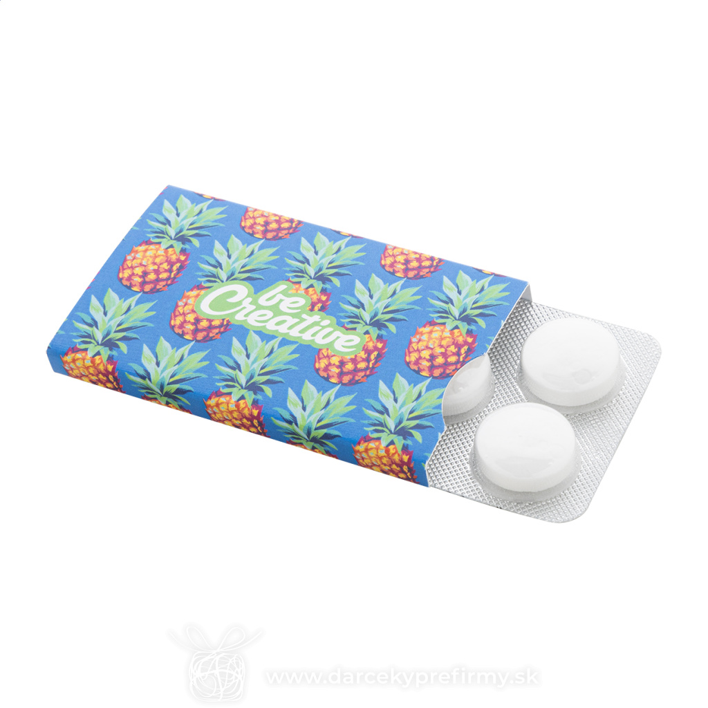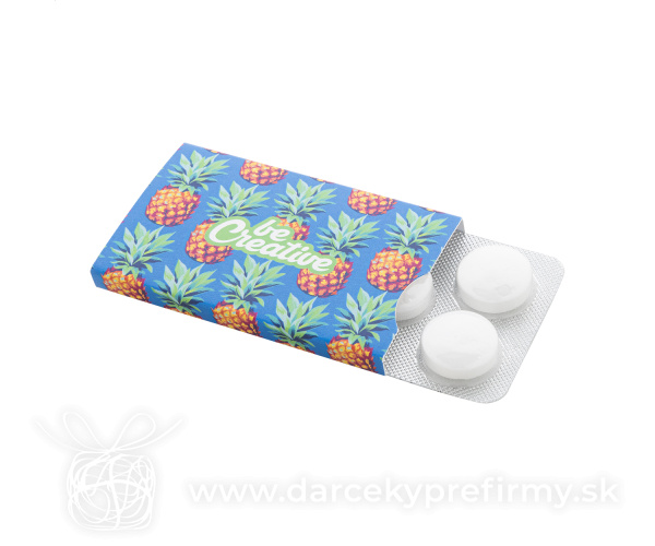 CreaMint 5 - mentolky na zákazku 5 ks veľkých mátových bonbónov v blistri na zákazku, s farebným potištěným papírovým obalem. Cena nezahrnuje tlačovú prípravu. Min. min.: 100 ks. 2,00 € (bez DPH) Rýchla objednávka Chcem poradiť Dostupnosť: Nie je skladom Rozmery: 43×66×7 mm Materiál: Papier Váha: 11g Potlač: tento predmet vieme potlačiť Vaším logom. Ohľadne ceny a technológie potlače, vrátane grafického návrhu s Vaším logom/textom nám prosím pošlite dopyt na info@darcekyprefirmy.sk Polia označené * sú povinné a musia byť vyplnené. Meno a Priezvisko (povinné pole) Firma (povinné pole) Email (povinné pole) Telefón Predpokladané odberné množstvo Správa (povinné pole) Odoslaním formulára súhlasíte so spracovaním osobných údajov Odoslať Odoslať Polia označené * sú povinné a musia byť vyplnené. Meno a Priezvisko (povinné pole) Firma (povinné pole) Email (povinné pole) Telefón Správa (povinné pole) Odoslaním formulára súhlasíte so spracovaním osobných údajov Odoslať Odoslať Mohlo by vás zaujímať Predchádzajúci slajd Následujúci slajd BERMONDS - Dávkovač mentolek 0,86 € (cena bez DPH) CreaChew Deluxe Eco - žuvačky na zákazku 1,98 € (cena bez DPH) CreaCandy Truck - dávkovač cukríkov na zákazku 2,99 € (cena bez DPH)