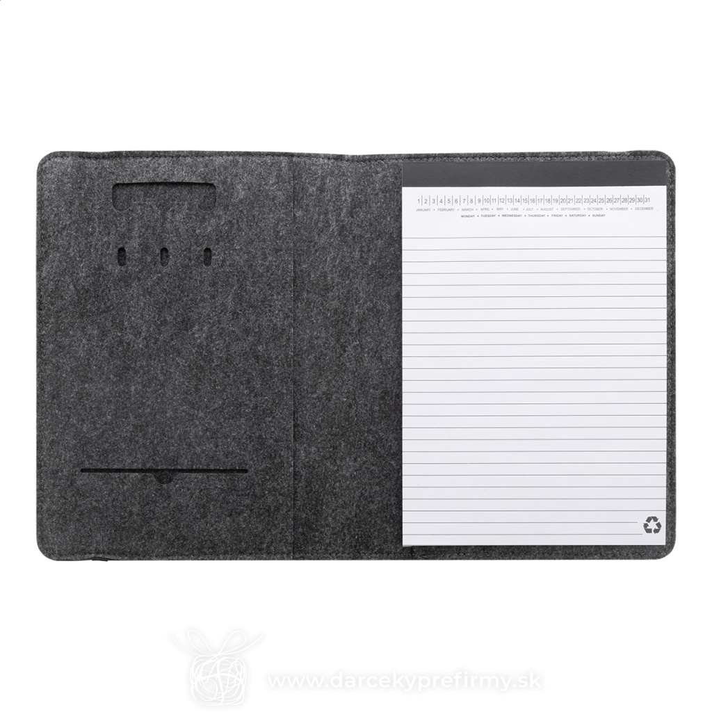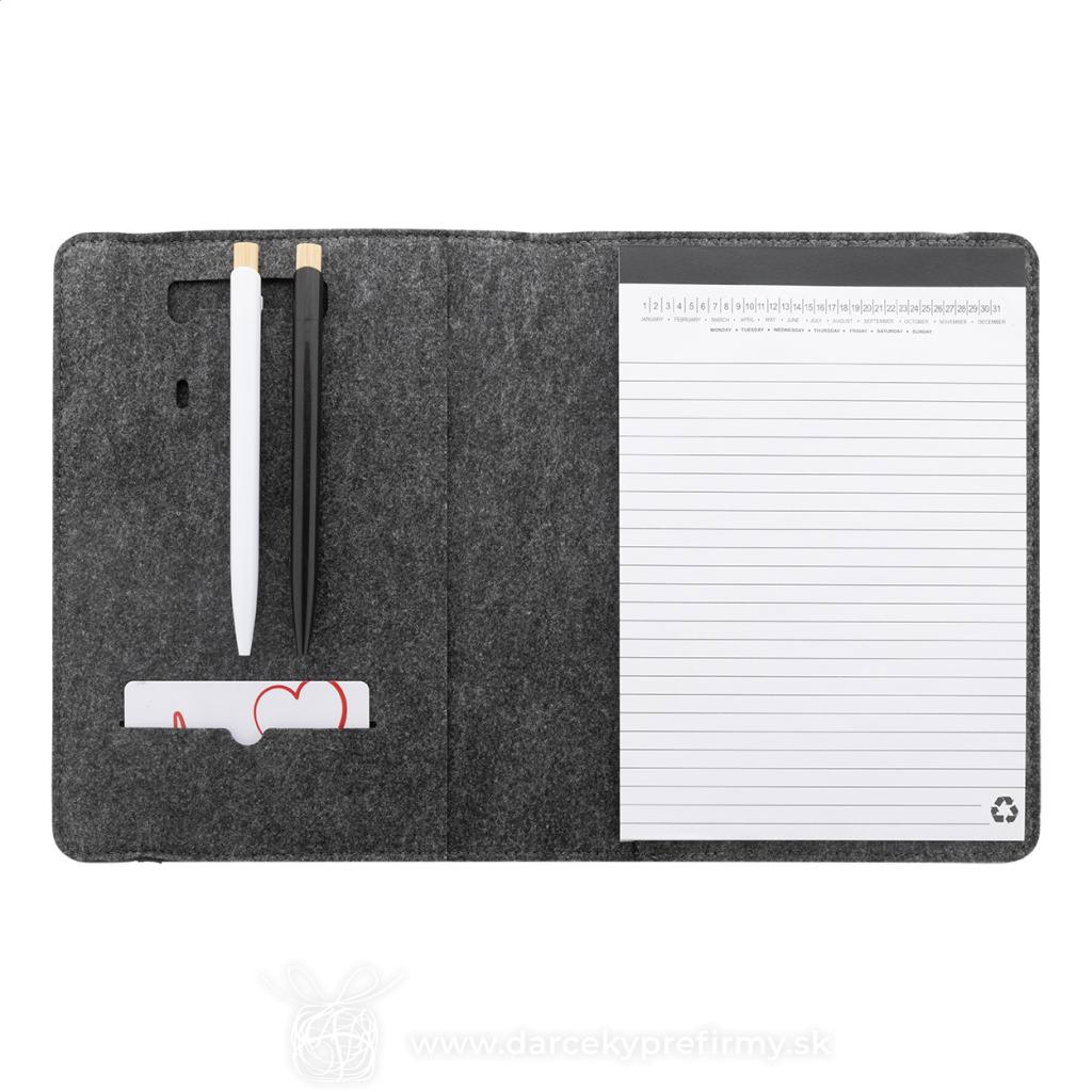Refelt Meet A5 - RPET plstená sloha na dokumenty Ďaľšie varianty 5,85 € 5,85 € Plstená zložka A5 na dokumenty z RPET formátu A5 s prednými a niekoľkými vnútornými vreckami s organizérom. S 20 linajkovými listami poznámkového bloku z recyklovaného papiera. 5,85 € (bez DPH) Rýchla objednávka Chcem poradiť Dostupnosť: Skladom do 48hod. 777 ks Rozmery: 174×225×14 mm Materiál: Recyklovaná PET plsť Váha: 150g Potlač: tento predmet vieme potlačiť Vaším logom. Ohľadne ceny a technológie potlače, vrátane grafického návrhu s Vaším logom/textom nám prosím pošlite dopyt na info@darcekyprefirmy.sk Polia označené * sú povinné a musia byť vyplnené. Meno a Priezvisko (povinné pole) Firma (povinné pole) Email (povinné pole) Telefón Predpokladané odberné množstvo Správa (povinné pole) Odoslaním formulára súhlasíte so spracovaním osobných údajov Odoslať Odoslať Polia označené * sú povinné a musia byť vyplnené. Meno a Priezvisko (povinné pole) Firma (povinné pole) Email (povinné pole) Telefón Správa (povinné pole) Odoslaním formulára súhlasíte so spracovaním osobných údajov Odoslať Odoslať Mohlo by vás zaujímať Predchádzajúci slajd Následujúci slajd CARACOL - Bambusový stojánek a zosilovač 3,78 € (cena bez DPH) Ropes - peračník 1,51 € (cena bez DPH) TALOR - Konferenční taška 5,45 € (cena bez DPH)