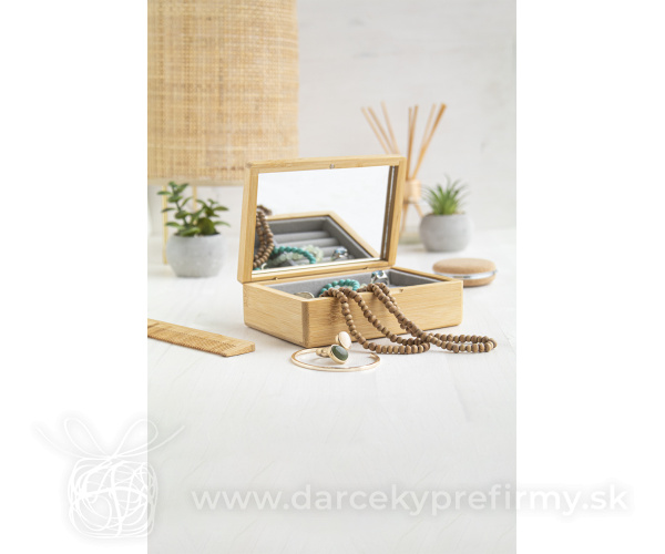 Arashi - bambusová šperkovnica Bambusová šperkovnica s vnútornou zamatovou výplňou a zrkadielkom vo veku. 9,88 € (bez DPH) Rýchla objednávka Chcem poradiť Dostupnosť: Skladom do 48hod. 562 ks Rozmery: 150×100×50 mm Materiál: Bambus Váha: 264g Potlač: tento predmet vieme potlačiť Vaším logom. Ohľadne ceny a technológie potlače, vrátane grafického návrhu s Vaším logom/textom nám prosím pošlite dopyt na info@darcekyprefirmy.sk Polia označené * sú povinné a musia byť vyplnené. Meno a Priezvisko (povinné pole) Firma (povinné pole) Email (povinné pole) Telefón Predpokladané odberné množstvo Správa (povinné pole) Odoslaním formulára súhlasíte so spracovaním osobných údajov Odoslať Odoslať Polia označené * sú povinné a musia byť vyplnené. Meno a Priezvisko (povinné pole) Firma (povinné pole) Email (povinné pole) Telefón Správa (povinné pole) Odoslaním formulára súhlasíte so spracovaním osobných údajov Odoslať Odoslať Mohlo by vás zaujímať Predchádzajúci slajd Následujúci slajd FAZE - Sada opakovane použiteľných čis 2,79 € (cena bez DPH) Hydra - kozmetická čelenka 1,56 € (cena bez DPH) Zahrievací vankúš VINGA Minton RCS z recyklovaného polyester 16,15 € (cena bez DPH)
