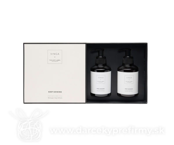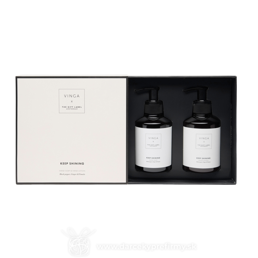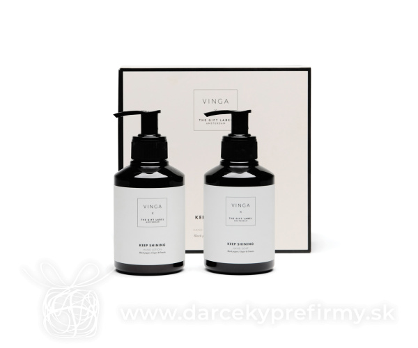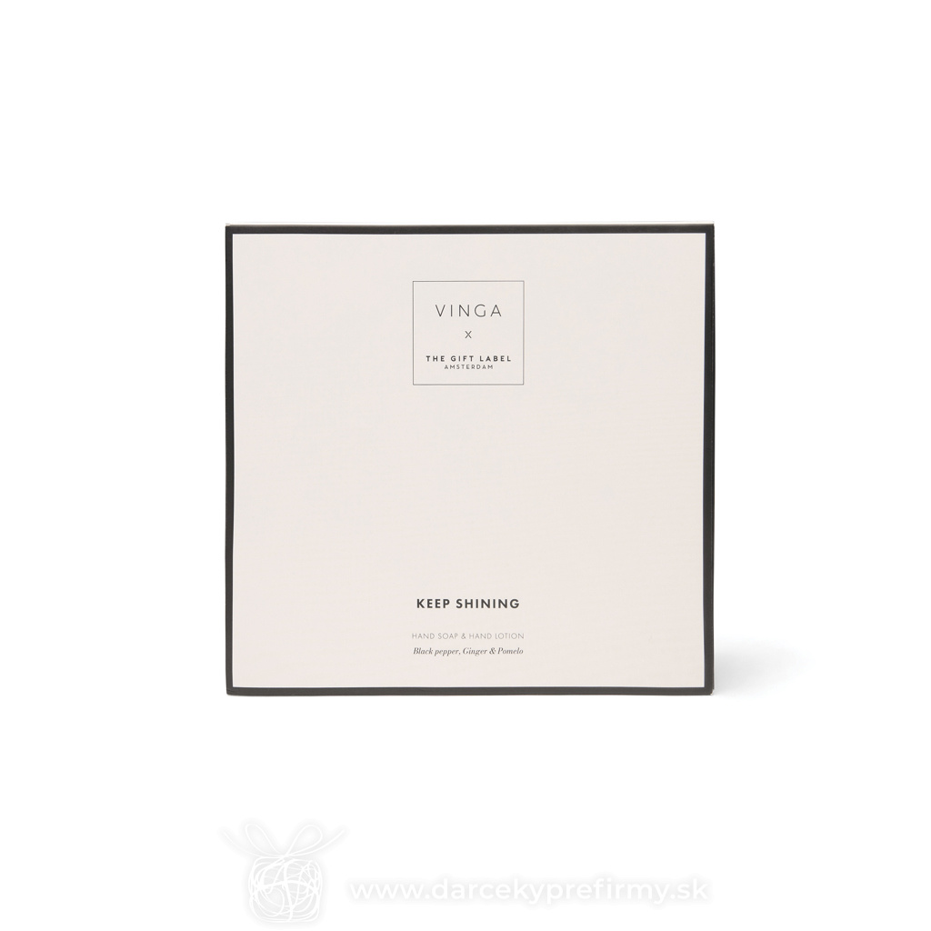 VINGA x TGL darčeková sada starostlivosti o ruky Hebké ruky každý deň. Doprajte si starostlivosť o ruky s touto krásne voňavou unisex sadou, ktorá obsahuje dve 200 ml fľaštičky tekutého mydla a krému na ruky. Vôňa čierneho korenia, zázvoru a pomela zanechá vaše ruky jemné, vyživené a príjemne prevoňané. Dotyk, na ktorý sa nezabúda. Elegantne balené v darčekovej krabičke v krémovo-bielej a čiernej farbe. 37,21 € (bez DPH) Rýchla objednávka Chcem poradiť Dostupnosť: Skladom do 48hod. 1393 ks Rozmery: 18 x 8 x 18 cm Materiál: rPET Váha: 475,5g Potlač: tento predmet vieme potlačiť Vaším logom. Ohľadne ceny a technológie potlače, vrátane grafického návrhu s Vaším logom/textom nám prosím pošlite dopyt na info@darcekyprefirmy.sk Polia označené * sú povinné a musia byť vyplnené. Meno a Priezvisko (povinné pole) Firma (povinné pole) Email (povinné pole) Telefón Predpokladané odberné množstvo Správa (povinné pole) Odoslaním formulára súhlasíte so spracovaním osobných údajov Odoslať Odoslať Polia označené * sú povinné a musia byť vyplnené. Meno a Priezvisko (povinné pole) Firma (povinné pole) Email (povinné pole) Telefón Správa (povinné pole) Odoslaním formulára súhlasíte so spracovaním osobných údajov Odoslať Odoslať Mohlo by vás zaujímať Predchádzajúci slajd Následujúci slajd WACO - Ohřívač rukou tvaru srdce 1,10 € (cena bez DPH) KAORI - Domácí aroma difůzer 14,28 € (cena bez DPH) KNOS - Difuzér s vanilkovou arómou 5,06 € (cena bez DPH)