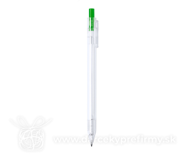 Musky - RPET guľôčkové pero Ďaľšie varianty 0,22 € 0,22 € 0,22 € 0,22 € 0,22 € Transparentné plastové guľôčkové pero z RPET s farebným tlačidlom. S modrou náplňou. 0,22 € (bez DPH) Rýchla objednávka Chcem poradiť Dostupnosť: Skladom do 48hod. 268 ks Rozmery: ø10×147 mm Materiál: Recyklovaný PET Váha: 7g Potlač: tento predmet vieme potlačiť Vaším logom. Ohľadne ceny a technológie potlače, vrátane grafického návrhu s Vaším logom/textom nám prosím pošlite dopyt na info@darcekyprefirmy.sk Polia označené * sú povinné a musia byť vyplnené. Meno a Priezvisko (povinné pole) Firma (povinné pole) Email (povinné pole) Telefón Predpokladané odberné množstvo Správa (povinné pole) Odoslaním formulára súhlasíte so spracovaním osobných údajov Odoslať Odoslať Polia označené * sú povinné a musia byť vyplnené. Meno a Priezvisko (povinné pole) Firma (povinné pole) Email (povinné pole) Telefón Správa (povinné pole) Odoslaním formulára súhlasíte so spracovaním osobných údajov Odoslať Odoslať Mohlo by vás zaujímať Predchádzajúci slajd Následujúci slajd Looky - guličkové pero 0,24 € (cena bez DPH) Bookot - guličkové pero 0,47 € (cena bez DPH) Leopard Clean - antibakteriálne pero 0,14 € (cena bez DPH)