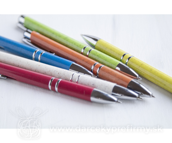 Wennel - guľôčkové pero Ďaľšie varianty 0,23 € 0,23 € 0,23 € 0,23 € 0,23 € Ekologické guľôčkové plastové pero z pšeničných stebiel s kovovými časťami a modrou náplňou. 0,23 € (bez DPH) Rýchla objednávka Chcem poradiť Dostupnosť: Nie je skladom Rozmery: ø10×137 mm Materiál: Pšeničná slama Váha: 10g Potlač: tento predmet vieme potlačiť Vaším logom. Ohľadne ceny a technológie potlače, vrátane grafického návrhu s Vaším logom/textom nám prosím pošlite dopyt na info@darcekyprefirmy.sk Polia označené * sú povinné a musia byť vyplnené. Meno a Priezvisko (povinné pole) Firma (povinné pole) Email (povinné pole) Telefón Predpokladané odberné množstvo Správa (povinné pole) Odoslaním formulára súhlasíte so spracovaním osobných údajov Odoslať Odoslať Polia označené * sú povinné a musia byť vyplnené. Meno a Priezvisko (povinné pole) Firma (povinné pole) Email (povinné pole) Telefón Správa (povinné pole) Odoslaním formulára súhlasíte so spracovaním osobných údajov Odoslať Odoslať Mohlo by vás zaujímať Predchádzajúci slajd Následujúci slajd Ponnel - guľôčkové pero 0,30 € (cena bez DPH) Rehodox - guličkové pero 0,50 € (cena bez DPH) Pero z GRS RABS s bambusovým klipom 0,62 € (cena bez DPH)