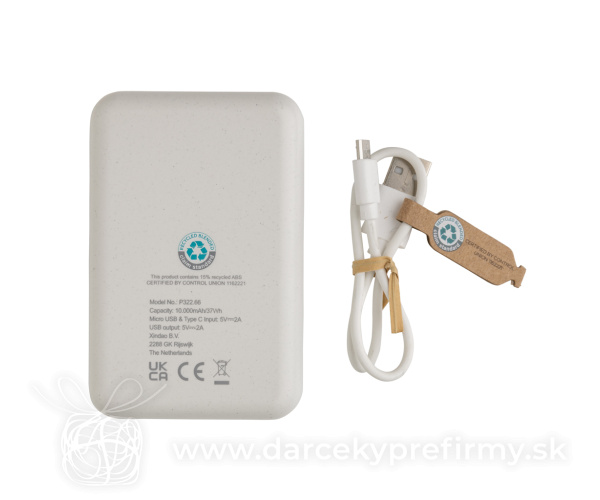 Powerbanka 10 000 mAh z RCS recyklovaného plastu Ďaľšie varianty 21,00 € 19,80 € Vrecková powerbanka s kapacitou 10 000 mAh vyrobená z recyklovaného ABS plastu s RCS certifikáciou. RCS (Recycled Claim Standard) je globálny štandard, ktorý umožňuje overiť použitie recyklovaného materiálu v produktu naprieč celým dodávateľským reťazcom. Celkový podiel recyklátu podľa váhy produktu: 20%. Kvalitná lítium polymérová batéria radu A s kapacitou 10 000 mAh plne nabije mobilný telefón až 4x. Svetelné indikátory stupňa nabitia. Micro USB vstup: 5V/2A, USB C vstup: 5V/2A. USB výstup: 5V/2A. Vrátane micro USB nabíjacieho kábla z recyklovaného TPE. Výrobok je kompletne bez PVC. 19,80 € (bez DPH) Rýchla objednávka Chcem poradiť Dostupnosť: Skladom do 48hod. 229 ks Rozmery: 9,9 x 6,5 x 2,4 cm Materiál: Recyklované ABS, Recyklované TPE Váha: 210g Potlač: tento predmet vieme potlačiť Vaším logom. Ohľadne ceny a technológie potlače, vrátane grafického návrhu s Vaším logom/textom nám prosím pošlite dopyt na info@darcekyprefirmy.sk Polia označené * sú povinné a musia byť vyplnené. Meno a Priezvisko (povinné pole) Firma (povinné pole) Email (povinné pole) Telefón Predpokladané odberné množstvo Správa (povinné pole) Odoslaním formulára súhlasíte so spracovaním osobných údajov Odoslať Odoslať Polia označené * sú povinné a musia byť vyplnené. Meno a Priezvisko (povinné pole) Firma (povinné pole) Email (povinné pole) Telefón Správa (povinné pole) Odoslaním formulára súhlasíte so spracovaním osobných údajov Odoslať Odoslať Mohlo by vás zaujímať Predchádzajúci slajd Následujúci slajd Urban Vitamin Sunnyvale 100W 15 000 mAh magn. powerbanka 86,93 € (cena bez DPH) POWERMAG - Powerbanka 10.000 mAh 24,31 € (cena bez DPH) Powerbanka 5000mAh Urban Vitamin Richmond z RCS alu a plastu 49,66 € (cena bez DPH)