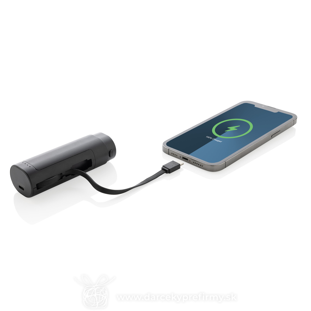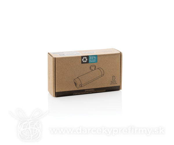 Powerbanka 5000mAh CycleCell s odnímateľnou batériou Powerbanka s jedinečným dizajnom je navrhnutá tak, aby podporovala recykláciu batérie na konci jej životného cyklu. Powerbanka s kapacitou 5 000 mAh je dodávaná s integrovaným káblom typu C, ktorý je možné ľahko pripojiť k zariadeniu a začať priame nabíjanie. Kábel je možné použiť aj na nabíjanie samotnej powerbanky. Vyrobené z recyklovaného ABS a recyklovaného TPE. RCS certifikácia zaisťuje garanciu použitia recyklovaného materiálu vďaka transparentnému prehľadu nad dodávateľským reťazcom. Celkový podiel recyklátu podľa váhy produktu: 30 %. Balené v FSC® krabičke. Bez PVC. Vstup: 5V/2,1A Výstup 5V/2,4A. 16,06 € (bez DPH) Rýchla objednávka Chcem poradiť Dostupnosť: Skladom do 48hod. 5730 ks Rozmery: 10,5 x 3,8 x 3,1 cm Materiál: rPC, Recyklované ABS Váha: 125,3g Potlač: tento predmet vieme potlačiť Vaším logom. Ohľadne ceny a technológie potlače, vrátane grafického návrhu s Vaším logom/textom nám prosím pošlite dopyt na info@darcekyprefirmy.sk Polia označené * sú povinné a musia byť vyplnené. Meno a Priezvisko (povinné pole) Firma (povinné pole) Email (povinné pole) Telefón Predpokladané odberné množstvo Správa (povinné pole) Odoslaním formulára súhlasíte so spracovaním osobných údajov Odoslať Odoslať Polia označené * sú povinné a musia byť vyplnené. Meno a Priezvisko (povinné pole) Firma (povinné pole) Email (povinné pole) Telefón Správa (povinné pole) Odoslaním formulára súhlasíte so spracovaním osobných údajov Odoslať Odoslať Mohlo by vás zaujímať Predchádzajúci slajd Následujúci slajd POWERMAG - Powerbanka 10.000 mAh 24,31 € (cena bez DPH) TRICPOWER - Ohřívač rukou a powerbanka 16,43 € (cena bez DPH) POWERFLAT 8C - Powerbanka 10000 mAh 17,27 € (cena bez DPH)