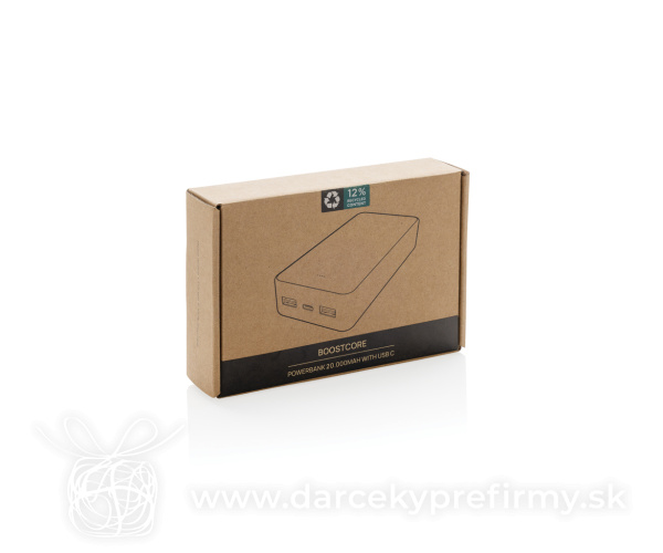 Powerbanka Boostcore 20000mAh s USB C z RCS recykl. plastu 20 000 mAh powerbanka so vstupným/výstupným portom USB C a ďalšími 2 portami USB A. Táto powerbanka dokáže nabíjať tri predmety naraz. Puzdro je vyrobené z recyklovaného plastu ABS s certifikáciou RCS. RCS je štandard pre overenie recyklovaného obsahu výrobku v celom dodávateľskom reťazci. Celkový recyklovaný materiál: 12 % na základe celkovej hmotnosti výrobku. Pri plnom nabití vám powerbanka poskytne dostatok energie na osemnásobné dobitie mobilného telefónu. Powerbanka obsahuje lítium-polymérovú batériu triedy A s dlhou výdržou 20 000 mAh. Vstup typu C 5 V/2,4 A; USB A: výstup 5 V/2,4 A, výstup typu C: 5 V/2 A. Položka a príslušenstvo neobsahuje PVC. Vrátane recyklovaného nabíjacieho kábla TPE s certifikáciou RCS. Balené v zmiešanom obale FSC®. 24,80 € (bez DPH) Rýchla objednávka Chcem poradiť Dostupnosť: Skladom do 48hod. 115 ks Rozmery: 13,5 x 6,9 x 2,9 cm Materiál: Recyklované ABS Váha: 408,5g Potlač: tento predmet vieme potlačiť Vaším logom. Ohľadne ceny a technológie potlače, vrátane grafického návrhu s Vaším logom/textom nám prosím pošlite dopyt na info@darcekyprefirmy.sk Polia označené * sú povinné a musia byť vyplnené. Meno a Priezvisko (povinné pole) Firma (povinné pole) Email (povinné pole) Telefón Predpokladané odberné množstvo Správa (povinné pole) Odoslaním formulára súhlasíte so spracovaním osobných údajov Odoslať Odoslať Polia označené * sú povinné a musia byť vyplnené. Meno a Priezvisko (povinné pole) Firma (povinné pole) Email (povinné pole) Telefón Správa (povinné pole) Odoslaním formulára súhlasíte so spracovaním osobných údajov Odoslať Odoslať Mohlo by vás zaujímať Predchádzajúci slajd Následujúci slajd POWERFLAT 8C - Powerbanka 10000 mAh 17,66 € (cena bez DPH) Powerbanka Urban Vitamin Los Angeles 20W PD z plastu RCS 35,96 € (cena bez DPH) POWER MATE - Slim PowerBank 2200 mAh -22 5,15 € (cena bez DPH)