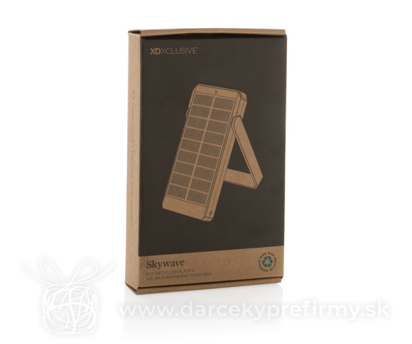 Solárna powerbanka Skywave 10 000 mAh z RCS recykl. plastu Solárna powerbanka s kapacitou 10 000 mAh využívajúca vysoko kvalitné monokryštalické solárne panely s 19% konverzným pomerom. Nabíjacia rýchlosť závisí od slnečných podmienok. Integrovaný stojanček na nastavenie v optimálnom uhle. Vyrobená z RCS recyklovaného ABS. RCS (Recycled Claim Standard) je globálny štandard, ktorý umožňuje overiť použitie recyklovaného materiálu v produkte naprieč celým dodávateľským reťazcom. Celkový podiel recyklátu podľa váhy produktu: 18%. Obsahuje vysoko kvalitnú lítiovú batériu radu A s kapacitou 10 000 mAh. Solárna nabíjacia rýchlosť: 5V/200mA. Vstup USB C: 5V/2A. Výstup USB A: 5V/2A, USB C: 5V/2A. Vrátane nabíjacieho kábla z RCS recyklovaného TPE. Balené v FSC kraftovej darčekovej krabičke. Registrovaný dizajn®. 37,21 € (bez DPH) Rýchla objednávka Chcem poradiť Dostupnosť: Skladom do 48hod. 3644 ks Rozmery: 15,5 x 7,4 x 1,9 cm Materiál: Recyklované ABS Váha: 287,3g Potlač: tento predmet vieme potlačiť Vaším logom. Ohľadne ceny a technológie potlače, vrátane grafického návrhu s Vaším logom/textom nám prosím pošlite dopyt na info@darcekyprefirmy.sk Polia označené * sú povinné a musia byť vyplnené. Meno a Priezvisko (povinné pole) Firma (povinné pole) Email (povinné pole) Telefón Predpokladané odberné množstvo Správa (povinné pole) Odoslaním formulára súhlasíte so spracovaním osobných údajov Odoslať Odoslať Polia označené * sú povinné a musia byť vyplnené. Meno a Priezvisko (povinné pole) Firma (povinné pole) Email (povinné pole) Telefón Správa (povinné pole) Odoslaním formulára súhlasíte so spracovaním osobných údajov Odoslať Odoslať Mohlo by vás zaujímať Predchádzajúci slajd Následujúci slajd Powerbanka Urban Vitamin Alameda 10 000 mAh 18W PD 47,17 € (cena bez DPH) Powerbanka 5000mAh CycleCell s odnímateľnou batériou 16,06 € (cena bez DPH) POWERFLAT8C - Powerbanka 8000 mAh 14,37 € (cena bez DPH)
