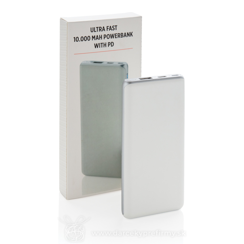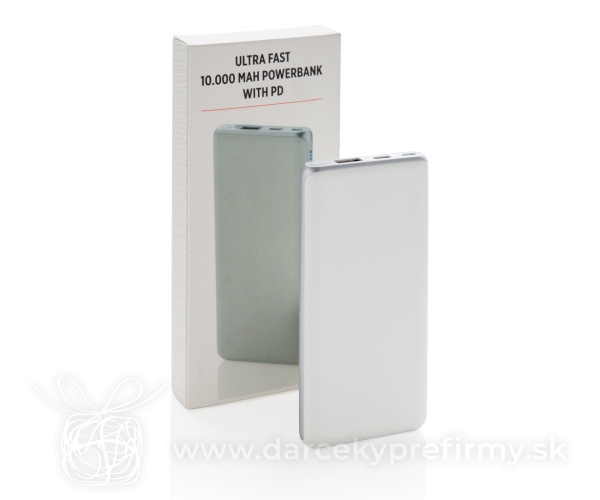 Super rýchla PD powerbanka 10 000 mAh Nabíjajte rýchlosťou blesku. Powerbanka s kapacitou 10 000 mAh ponúkajúca aktuálne najrýchlejší možnosti nabíjania. S klasickým USB portom a USB typu C, podporujúcim PD (Power Delivery) pre mimoriadne rýchle nabíjanie vybraných zariadení. Micro USB vstup: 5V/2A. USB výstup: 5V/3A 9V/2A 12V/1.5A. USB Typu C: vstup: 5V/2A 9V/2A, výstup: 5V/3A 9V/2A 12V/1.5A. 35,96 € (bez DPH) Rýchla objednávka Chcem poradiť Dostupnosť: Skladom do 48hod. 3927 ks Rozmery: 13,7 x 6,8 x 1,6 cm Materiál: ABS Váha: 202g Potlač: tento predmet vieme potlačiť Vaším logom. Ohľadne ceny a technológie potlače, vrátane grafického návrhu s Vaším logom/textom nám prosím pošlite dopyt na info@darcekyprefirmy.sk Polia označené * sú povinné a musia byť vyplnené. Meno a Priezvisko (povinné pole) Firma (povinné pole) Email (povinné pole) Telefón Predpokladané odberné množstvo Správa (povinné pole) Odoslaním formulára súhlasíte so spracovaním osobných údajov Odoslať Odoslať Polia označené * sú povinné a musia byť vyplnené. Meno a Priezvisko (povinné pole) Firma (povinné pole) Email (povinné pole) Telefón Správa (povinné pole) Odoslaním formulára súhlasíte so spracovaním osobných údajov Odoslať Odoslať Mohlo by vás zaujímať Predchádzajúci slajd Následujúci slajd POWERFLAT C - Powerbanka Type C 4000 mAh 9,61 € (cena bez DPH) Urban Vitamin Sunnyvale 100W 15 000 mAh magn. powerbanka 86,93 € (cena bez DPH) POWERBAM - Powerbanka 2200 mAH - bambus 6,73 € (cena bez DPH)