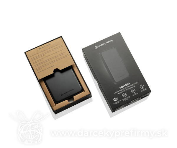 Urban Vitamin Pomona 5000 mAh Qi2.2 25W magnet. powerbanka Ďaľšie varianty 74,58 € 74,58 € "Pomona je vybavená pokročilou magnetickou technológiou Qi2.2, ktorá sa bezpečne a presne prichytí ku každému zariadeniu kompatibilnému s Qi2. Poskytuje mimoriadne rýchle bezdrôtové nabíjanie s výkonom až 25 W. Pre ešte vyšší výkon ponúka 30 W USB-C káblový výstup a 20 W rýchle nabíjanie samotnej powerbanky. Stačí ju jednoducho priložiť a nabíjanie sa spustí okamžite.Strana orientovaná k telefónu je potiahnutá extra jemným silikónom, ktorý chráni zariadenie pred poškriabaním. Zadná strana z prémiového hliníka dodáva elegantný vzhľad a umožňuje mimoriadne tenký dizajn s hrúbkou len 8,3 mm. Vysokokvalitná 5000 mAh semi-solid batéria so 100 % obsahom kobaltu zabezpečuje vyššiu bezpečnosť, stabilný výkon a až 1000 nabíjacích cyklov. Pomona je schválená na prenášanie v príručnej batožine v lietadle.Vyrobená z RCS cert. rec. hliníka, rec. silikónu a rec. PC plastu. Produkty Urban Vitamin neobsahujú PVC a sú balené v obaloch s redukovaným obsahom plastov." 74,58 € (bez DPH) Rýchla objednávka Chcem poradiť Dostupnosť: Rozmery: 10,2 x 7 x 0,8 cm Materiál: Recyklovaný hliník, Recyklované silikón Váha: 124,4g Potlač: tento predmet vieme potlačiť Vaším logom. Ohľadne ceny a technológie potlače, vrátane grafického návrhu s Vaším logom/textom nám prosím pošlite dopyt na info@darcekyprefirmy.sk Polia označené * sú povinné a musia byť vyplnené. Meno a Priezvisko (povinné pole) Firma (povinné pole) Email (povinné pole) Telefón Predpokladané odberné množstvo Správa (povinné pole) Odoslaním formulára súhlasíte so spracovaním osobných údajov Odoslať Odoslať Polia označené * sú povinné a musia byť vyplnené. Meno a Priezvisko (povinné pole) Firma (povinné pole) Email (povinné pole) Telefón Správa (povinné pole) Odoslaním formulára súhlasíte so spracovaním osobných údajov Odoslať Odoslať Mohlo by vás zaujímať Predchádzajúci slajd Následujúci slajd Urban Vitamin Pomona 5000 mAh Qi2.2 25W magnet. powerbanka 74,58 € (cena bez DPH) Urban Vitamin Pomona 5000 mAh Qi2.2 25W magnet. powerbanka 74,58 € (cena bez DPH)