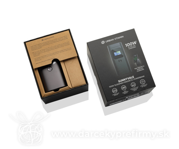 Urban Vitamin Sunnyvale 100W 15 000 mAh magn. powerbanka Urban Vitamin Sunnyvale powerbanka je špičkové riešenie nabíjania navrhnuté tak, aby spĺňala požiadavky moderného života. S robustnou kapacitou 15 000 mAh a podporou ultra-rýchleho nabíjania až 100W, táto powerbanka zabezpečí, že všetky vaše zariadenia budú nabité bleskovou rýchlosťou, vrátane laptopov a MacBookov. Je vybavená vysokokvalitným farebným TFT displejom, ktorý v reálnom čase zobrazuje informácie o rýchlosti nabíjania a ďalších dôležitých údajov pre maximálne pohodlie. To, čo odlišuje model Sunnyvale od ostatných je integrovaný 15W bezdrôtový magnetický stojan na telefón, ktorý umožňuje bezdrôtové nabíjanie a zároveň udržiava telefón v ideálnej polohe na hands-free používanie. Nabíja až štyri zariadenia súčasne: dva cez USB-C, jedno cez USB-A a jedno bezdrôtovo, vďaka čomu je všestranným spoločníkom pre každú situáciu. Model Sunnyvale je vyrobený z odolného hliníka a spája prémiový vzhľad a dojem s kompaktným, prenosným dizajnom. Bez PVC. 86,93 € (bez DPH) Rýchla objednávka Chcem poradiť Dostupnosť: Skladom do 48hod. 1582 ks Rozmery: 11,6 x 5,3 x 5,3 cm Materiál: Hliník, ABS Váha: 456g Potlač: tento predmet vieme potlačiť Vaším logom. Ohľadne ceny a technológie potlače, vrátane grafického návrhu s Vaším logom/textom nám prosím pošlite dopyt na info@darcekyprefirmy.sk Polia označené * sú povinné a musia byť vyplnené. Meno a Priezvisko (povinné pole) Firma (povinné pole) Email (povinné pole) Telefón Predpokladané odberné množstvo Správa (povinné pole) Odoslaním formulára súhlasíte so spracovaním osobných údajov Odoslať Odoslať Polia označené * sú povinné a musia byť vyplnené. Meno a Priezvisko (povinné pole) Firma (povinné pole) Email (povinné pole) Telefón Správa (povinné pole) Odoslaním formulára súhlasíte so spracovaním osobných údajov Odoslať Odoslať Mohlo by vás zaujímať Predchádzajúci slajd Následujúci slajd POWER52C - Power banka 5000 mAh 13,97 € (cena bez DPH) Powerbanka 4000mAh s USB C z RCS recykl. plastu a hliníka 15,94 € (cena bez DPH) Powerbanka 4000mAh s USB C z RCS recykl. plastu a hliníka 15,94 € (cena bez DPH)