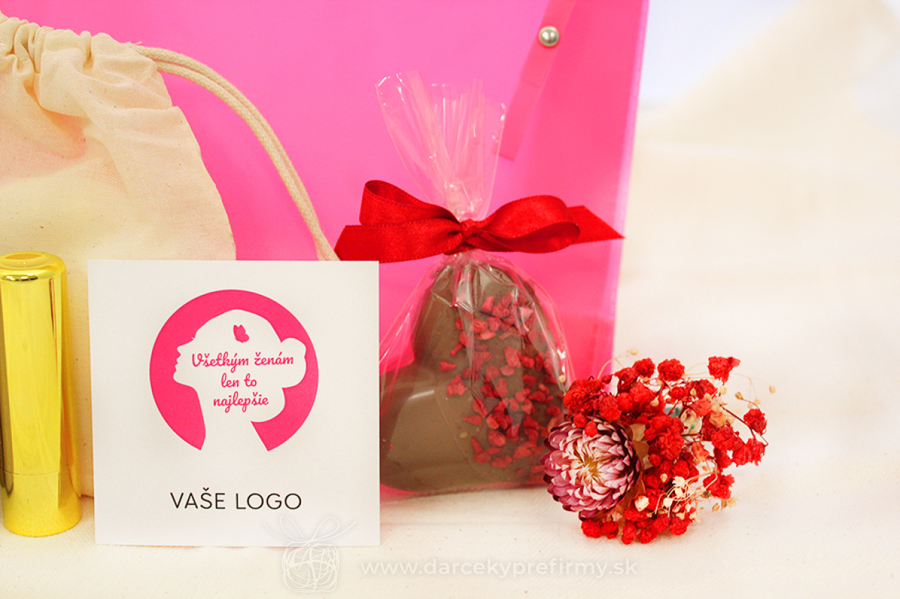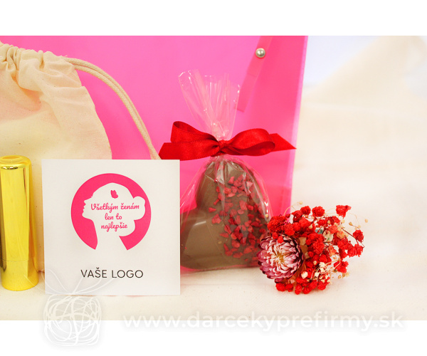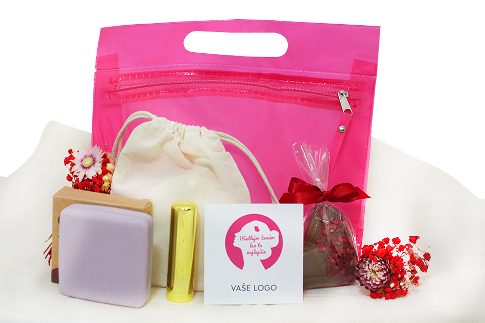 RUŽOVÉ PREKVAPENIE MDŽ BALENIA OD 20 KS Krásne balenie pre dámy k príležitosti MDŽ alebo iba tak :), od 20 ks s možnosťou potlače kozmetickej taštičky 10,50 € (bez DPH) Rýchla objednávka Chcem poradiť Dostupnosť: Minimálne odberné množstvo 20 Potlač: tento predmet vieme potlačiť Vaším logom. Ohľadne ceny a technológie potlače, vrátane grafického návrhu s Vaším logom/textom nám prosím pošlite dopyt na info@darcekyprefirmy.sk Informácie o RUŽOVÉ PREKVAPENIE pralinkové srdiečko z mliečnej čokolády, s maslovo - malinovým kremom, posypane lyofilizovanymi malinami. Nálepka s logom prírodné tuhé mydlo na ruky a telo, 100gr, rôzne druhy (ovsené, červ.hrozno, jablko),yn. Itinera, 100% recykl. Obal, vegan&cruelty free transparentná kozmetická taštička z PVC na zips, rozmery komplimentka/kartička s venovaním s Vaším logom v cene VERZIA PLUS: tri opakovane použiteľné a prateľné čistiace tampóny na tvár (priemer 8 cm). Vyrobené z bambusových vlákien (70%) a z bavlny (30 %). Dodávané v bavln.sáčku. *potlač taštičky 1f logo (sieťotlač) +1,80€ pri 30 ks, +1,30€ pri 50 ks, cena potlače klesá pri vyššom počte Pri vyšších odberoch individuálna zľava. Vyžiadajte si ponuku. Pre nižší ako min. odber platia upravené ceny (informujte sa). DARCEKYPREFIRMY_komplimentky_vzorkovnik_2025Objednávka krok po kroku Polia označené * sú povinné a musia byť vyplnené. Meno a Priezvisko (povinné pole) Firma (povinné pole) Email (povinné pole) Telefón Predpokladané odberné množstvo Správa (povinné pole) Odoslaním formulára súhlasíte so spracovaním osobných údajov Odoslať Odoslať Polia označené * sú povinné a musia byť vyplnené. Meno a Priezvisko (povinné pole) Firma (povinné pole) Email (povinné pole) Telefón Správa (povinné pole) Odoslaním formulára súhlasíte so spracovaním osobných údajov Odoslať Odoslať Mohlo by vás zaujímať Predchádzajúci slajd Následujúci slajd PRÍRODNÝ MDŽ BALÍČEK 17,00 € (cena bez DPH) MDŽ BALENIA OD 20 KS WELLNESS V DENIMOVEJ TAŠTIČKE 12,50 € (cena bez DPH) MDŽ BALENIA OD 20 KS SADA SOFT NUIT 12,50 € (cena bez DPH) MDŽ BALENIA OD 20 KS
