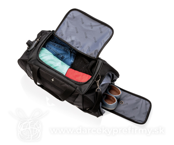 Športová víkendová taška Športová taška z polyesteru 600D a 1680D. Obsahuje mnoho priestranných oddielov so zatváraním na zips v tvare písmena U, bočné oddiel na topánky s vetraním a bočnú priehradku na fľašu. Predné vrecko na zips s praktickou priehradkou na chytrý telefón alebo iné príslušenstvo na cesty. Nastaviteľný ramenný popruh a dvojitá horná ucha pre pohodlie a rôzne možnosti nosenia. Bez PVC. 43,46 € (bez DPH) Rýchla objednávka Chcem poradiť Dostupnosť: Skladom do 48hod. 2823 ks Rozmery: 25 x 30 x 61 cm Materiál: Polyester, Polyester Váha: 830g Potlač: tento predmet vieme potlačiť Vaším logom. Ohľadne ceny a technológie potlače, vrátane grafického návrhu s Vaším logom/textom nám prosím pošlite dopyt na info@darcekyprefirmy.sk Polia označené * sú povinné a musia byť vyplnené. Meno a Priezvisko (povinné pole) Firma (povinné pole) Email (povinné pole) Telefón Predpokladané odberné množstvo Správa (povinné pole) Odoslaním formulára súhlasíte so spracovaním osobných údajov Odoslať Odoslať Polia označené * sú povinné a musia byť vyplnené. Meno a Priezvisko (povinné pole) Firma (povinné pole) Email (povinné pole) Telefón Správa (povinné pole) Odoslaním formulára súhlasíte so spracovaním osobných údajov Odoslať Odoslať Mohlo by vás zaujímať Predchádzajúci slajd Následujúci slajd Subobag Party - taška cez rameno z RPET na zákazku 13,00 € (cena bez DPH) Matsuri - ľadvinka 2,13 € (cena bez DPH) Víkendová taška Kazu z RPET AWARE™ 27,31 € (cena bez DPH)