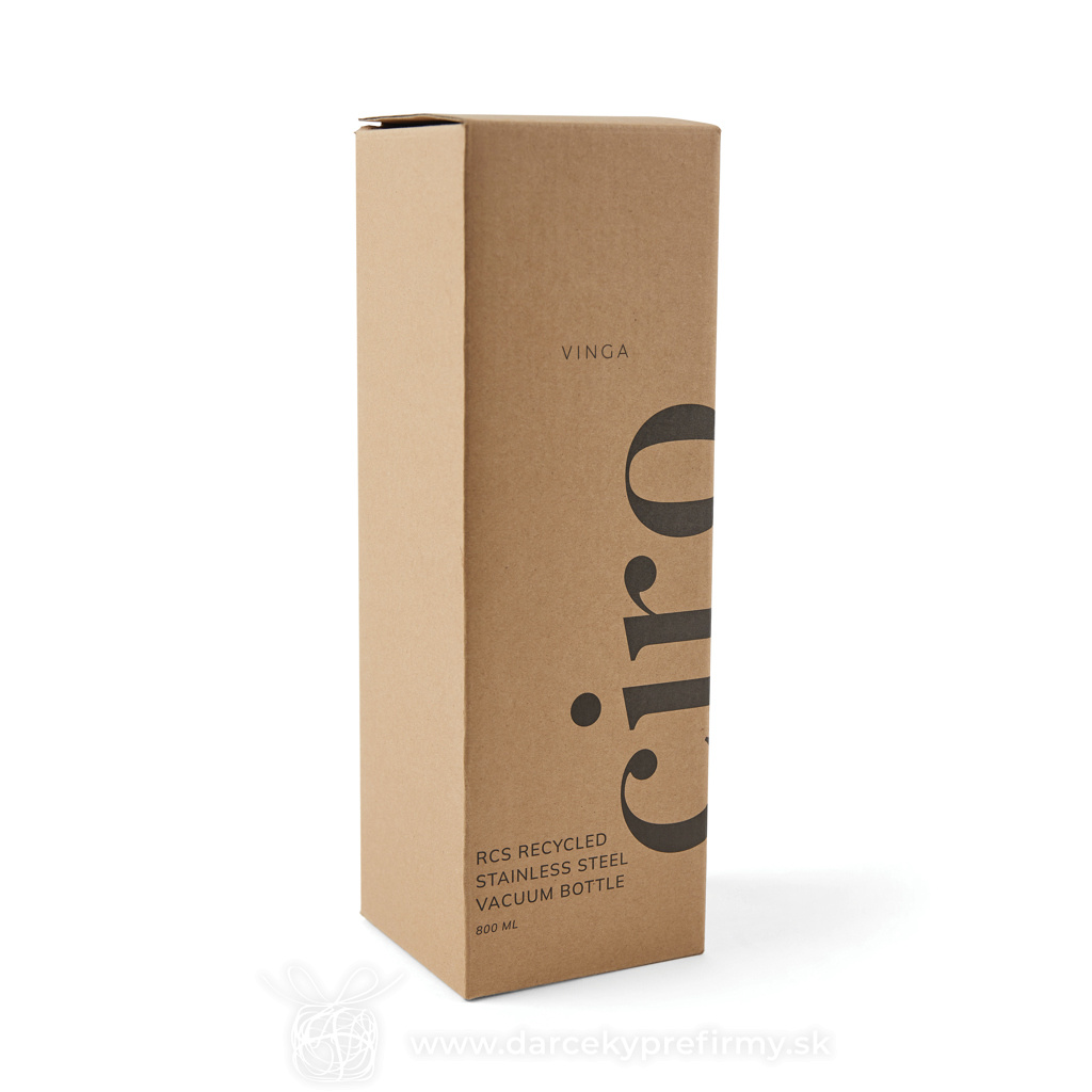 Termo fľaša VINGA Ciro 800ml z RCS recykl. ocele Ďaľšie varianty 21,11 € 21,11 € 21,11 € 21,11 € 21,11 € Elegantná termo fľaša Ciro s uzáverom z akáciového dreva s kovovým pútkom pre ľahký prenos. Akátové drevo je organický materiál, u ktorého sú rozdiely v odtieni a farbe prirodzenými vlastnosťami. Dvojitá stena z RCS certifikovanej recyklovanej ocele na uchovanie nápoja horúceho alebo studeného po dlhú dobu. RCS (Recycled Claim Standard) je globálny štandard, ktorý umožňuje overiť použitie recyklovaného materiálu v produkte naprieč celým dodávateľským reťazcom. Celkový podiel recyklátu podľa váhy produktu: 79%. Fľaša sa dá ľahko čistiť, iba na ručné umývanie. Balené v FSC® darčekovej kraftovej krabičke. Objem: 800 ml. 21,11 € (bez DPH) Rýchla objednávka Chcem poradiť Dostupnosť: Skladom do 48hod. 2179 ks Rozmery: 25,8 x ø 8 cm Materiál: Recyklovaná nehrdzavejúca oceľ, Drevo Váha: 385g Potlač: tento predmet vieme potlačiť Vaším logom. Ohľadne ceny a technológie potlače, vrátane grafického návrhu s Vaším logom/textom nám prosím pošlite dopyt na info@darcekyprefirmy.sk Polia označené * sú povinné a musia byť vyplnené. Meno a Priezvisko (povinné pole) Firma (povinné pole) Email (povinné pole) Telefón Predpokladané odberné množstvo Správa (povinné pole) Odoslaním formulára súhlasíte so spracovaním osobných údajov Odoslať Odoslať Polia označené * sú povinné a musia byť vyplnené. Meno a Priezvisko (povinné pole) Firma (povinné pole) Email (povinné pole) Telefón Správa (povinné pole) Odoslaním formulára súhlasíte so spracovaním osobných údajov Odoslať Odoslať Mohlo by vás zaujímať Predchádzajúci slajd Následujúci slajd Cestovný nerezový termo hrnček 600ml Black+Blum 25,44 € (cena bez DPH) Termohrnček Easy lock z RCS recyklovanej ocele 13,34 € (cena bez DPH) Termohrnček Avira Alya 300ml z RCS recyklovanej ocele 18,51 € (cena bez DPH)