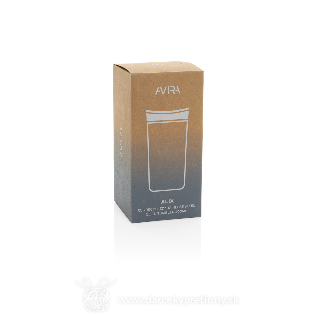 Termohrnček 400ml Avira Alix z RCS recykl. nerezovej ocele Ďaľšie varianty 22,25 € 22,25 € 22,25 € Zoznám sa s Alix – dokonalým spoločníkom na kávu pre tých, čo sú neustále v pohybe. Jediným kliknutím a jednou rukou otvoríš uzáver, takže je ideálny na rýchle dúšky počas cesty do práce či ranného šoférovania. Elegantné viečko, ktoré sa ľahko čistí, dopĺňa telo fľaše vyrobené z prémiovej recyklovanej ocele certifikovanej podľa RCS – spája nižší dopad a štýl. Objem 400 ml je ideálny pre tvoje obľúbené horúce nápoje. Balené v ekologickom kraftovom papieri s certifikátom FSC®, ktorý môžeš premeniť na štýlový držiak na telefón, stojan na ceruzky alebo mini kvetináč. Celkový podiel recyklovaného materiálu: 64% podľa hmotnosti výrobku. 2 % z výťažku z každého predaného produktu Impact budú venované organizácii Water.org. 22,25 € (bez DPH) Rýchla objednávka Chcem poradiť Dostupnosť: Skladom do 48hod. 2930 ks Rozmery: 16,5 x ø 8,3 cm Materiál: Recyklovaná nehrdzavejúca oceľ, PP Váha: 28,7g Potlač: tento predmet vieme potlačiť Vaším logom. Ohľadne ceny a technológie potlače, vrátane grafického návrhu s Vaším logom/textom nám prosím pošlite dopyt na info@darcekyprefirmy.sk Polia označené * sú povinné a musia byť vyplnené. Meno a Priezvisko (povinné pole) Firma (povinné pole) Email (povinné pole) Telefón Predpokladané odberné množstvo Správa (povinné pole) Odoslaním formulára súhlasíte so spracovaním osobných údajov Odoslať Odoslať Polia označené * sú povinné a musia byť vyplnené. Meno a Priezvisko (povinné pole) Firma (povinné pole) Email (povinné pole) Telefón Správa (povinné pole) Odoslaním formulára súhlasíte so spracovaním osobných údajov Odoslať Odoslať Mohlo by vás zaujímať Predchádzajúci slajd Následujúci slajd CreaCup - termo hrnček na zákazku, vrchnák 1,30 € (cena bez DPH) Cruiser RCS recyklovaný kompaktný termohrnček 14,86 € (cena bez DPH) Tacla - termoska 8,90 € (cena bez DPH)