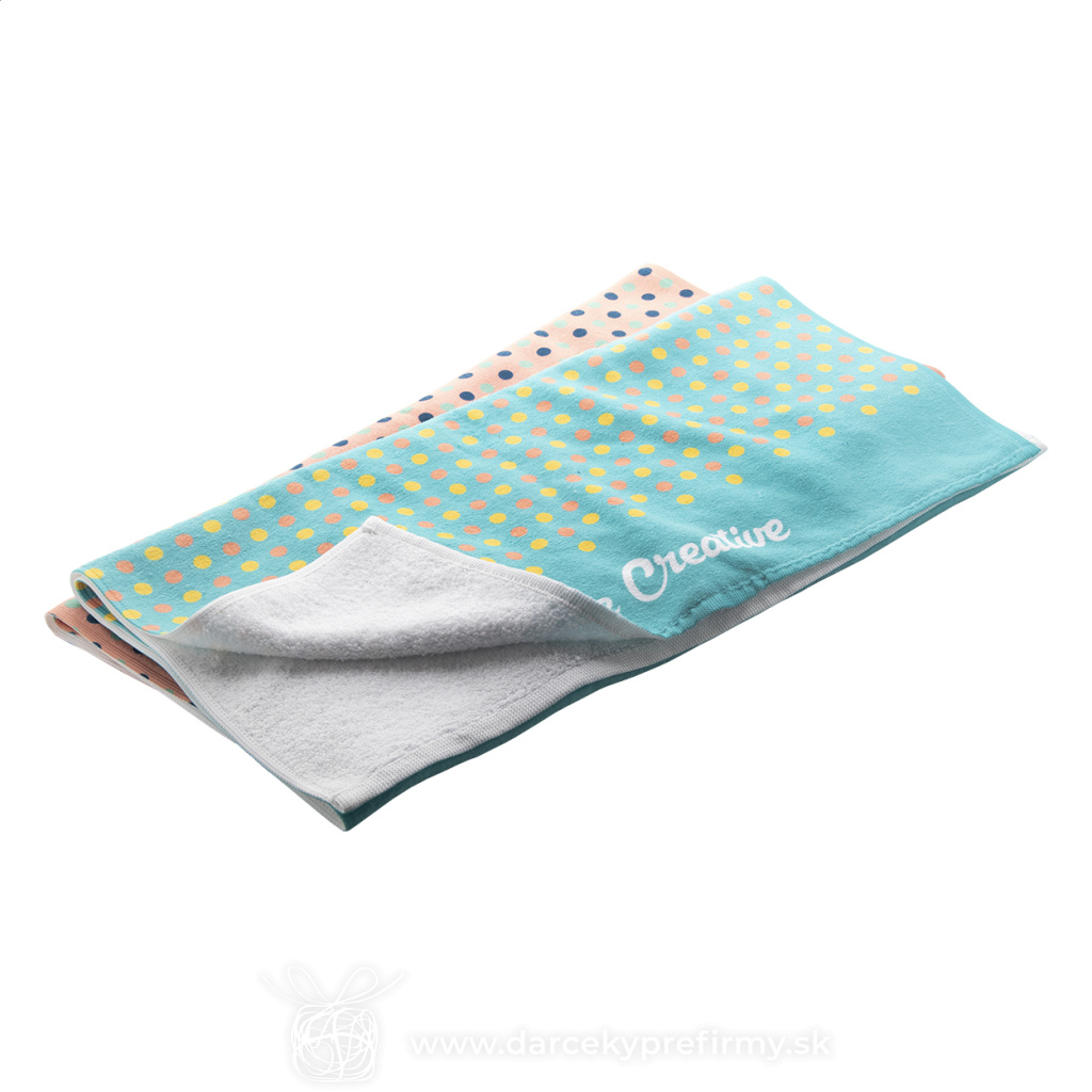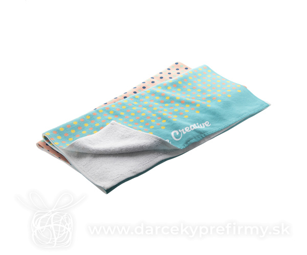 CreaTowel M - uterák se sublimačnou potlačou Obojstranný uterák so sublimačnou potlačou na jednej strane. 100 % bavlna + 100 % mikrovlákno, 400 g/m². Cena zahŕňa sublimačnú potlač, nezahŕňa tlačovú prípravu. Min. mn.: 25 ks. 15,60 € (bez DPH) Rýchla objednávka Chcem poradiť Dostupnosť: Skladom do 48hod. 2810 ks Rozmery: 500×1000 mm Materiál: Bavlna Váha: 178g Potlač: tento predmet vieme potlačiť Vaším logom. Ohľadne ceny a technológie potlače, vrátane grafického návrhu s Vaším logom/textom nám prosím pošlite dopyt na info@darcekyprefirmy.sk Polia označené * sú povinné a musia byť vyplnené. Meno a Priezvisko (povinné pole) Firma (povinné pole) Email (povinné pole) Telefón Predpokladané odberné množstvo Správa (povinné pole) Odoslaním formulára súhlasíte so spracovaním osobných údajov Odoslať Odoslať Polia označené * sú povinné a musia byť vyplnené. Meno a Priezvisko (povinné pole) Firma (povinné pole) Email (povinné pole) Telefón Správa (povinné pole) Odoslaním formulára súhlasíte so spracovaním osobných údajov Odoslať Odoslať Mohlo by vás zaujímať Predchádzajúci slajd Následujúci slajd Hamam osuška VINGA Tolo 23,55 € (cena bez DPH) PERRY - Ručník, přírodní bavlna 140x70 12,38 € (cena bez DPH) SERRY - Ručník z bio bavlny 50x30 cm 1,80 € (cena bez DPH)